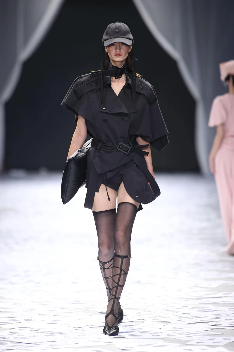 本季2024年春夏系列以工作中的女人為主軸、職場女性的魅力為靈感,將正式的女性以大U領西裝、襯衫裙裝等材質、版型運用,若隱若現帶有俐落的套裝氛圍。