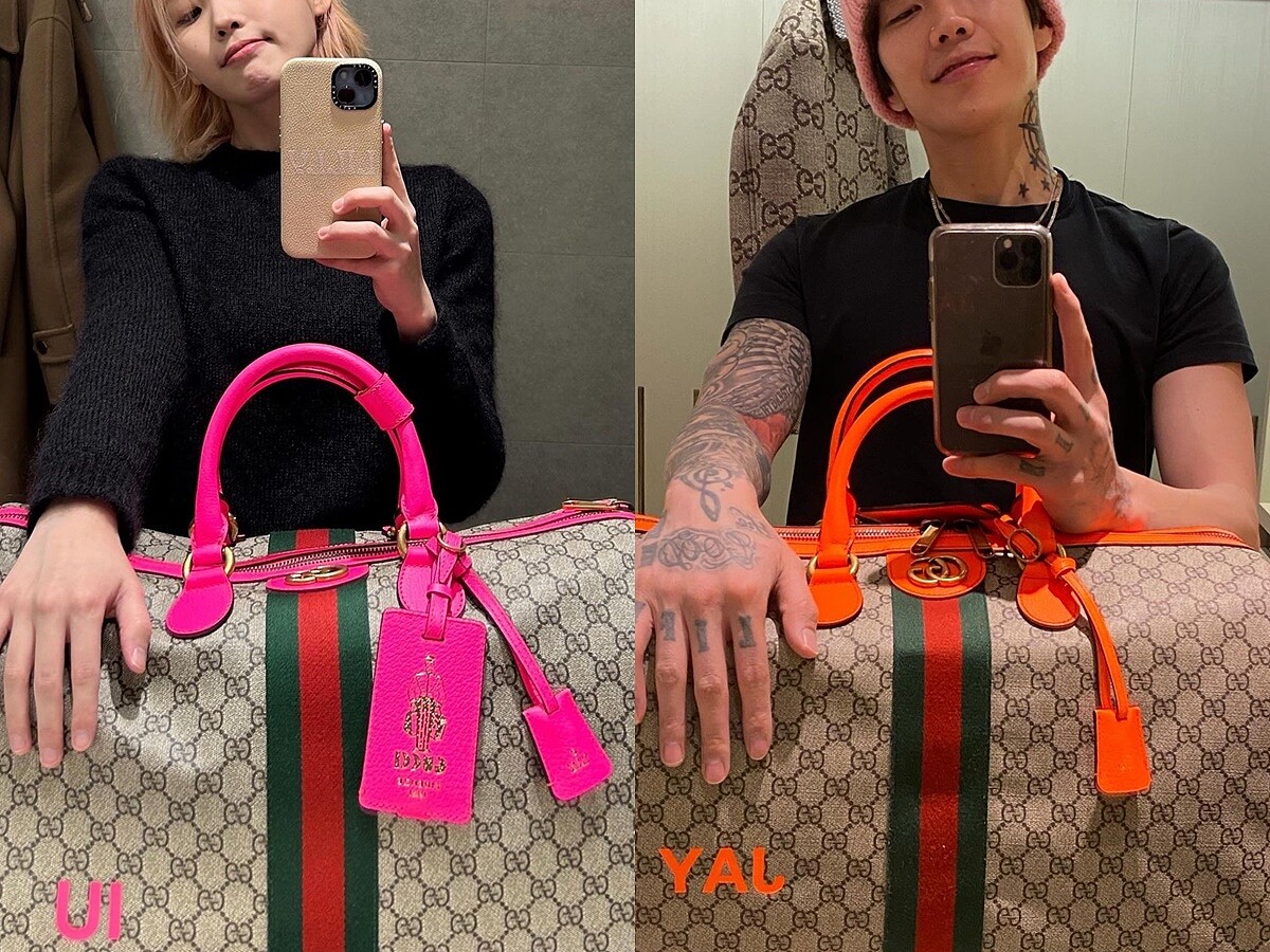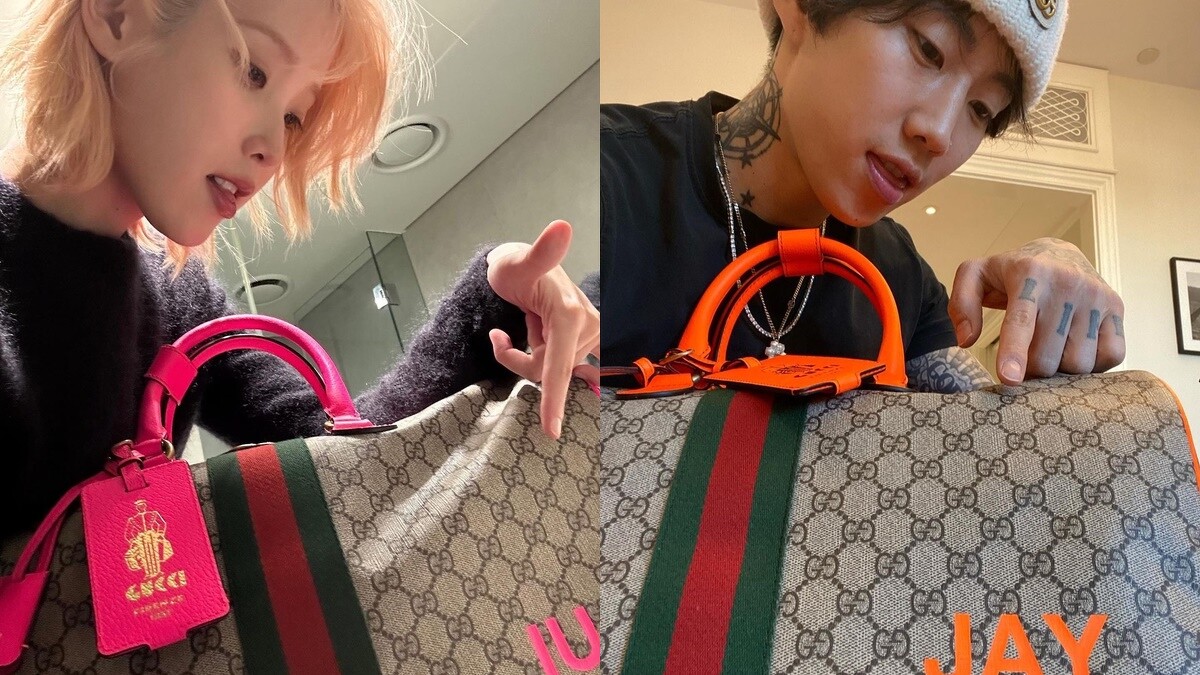 IU、Jay Park穿著大衣造型、手提Gucci印花旅行袋各自出發前往米蘭看秀,IU率先在Instagram上分享了這身造型,並首度亮相她的粉金色新髮型,不久後換Jay Park貼出私下自拍的照片,居然全都是模仿IU!拍照角度、表情和動作通通複製,2人搞笑的互動讓粉絲們看了好開心。