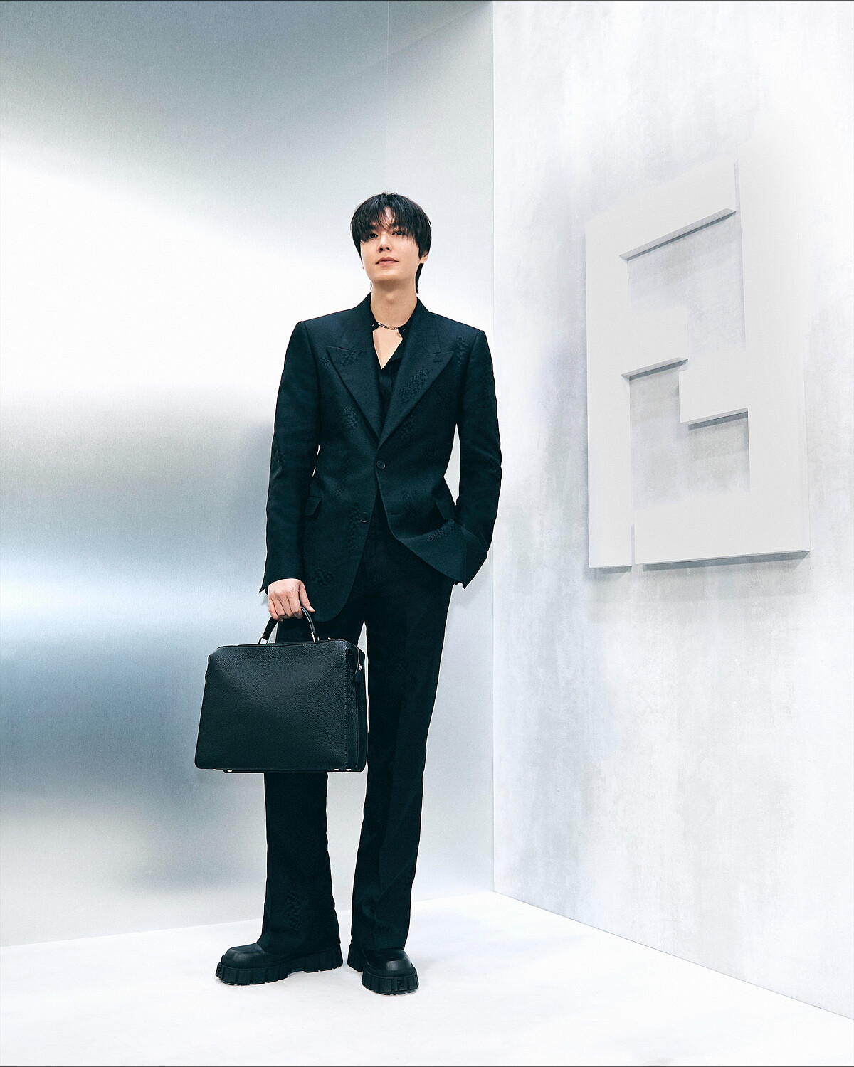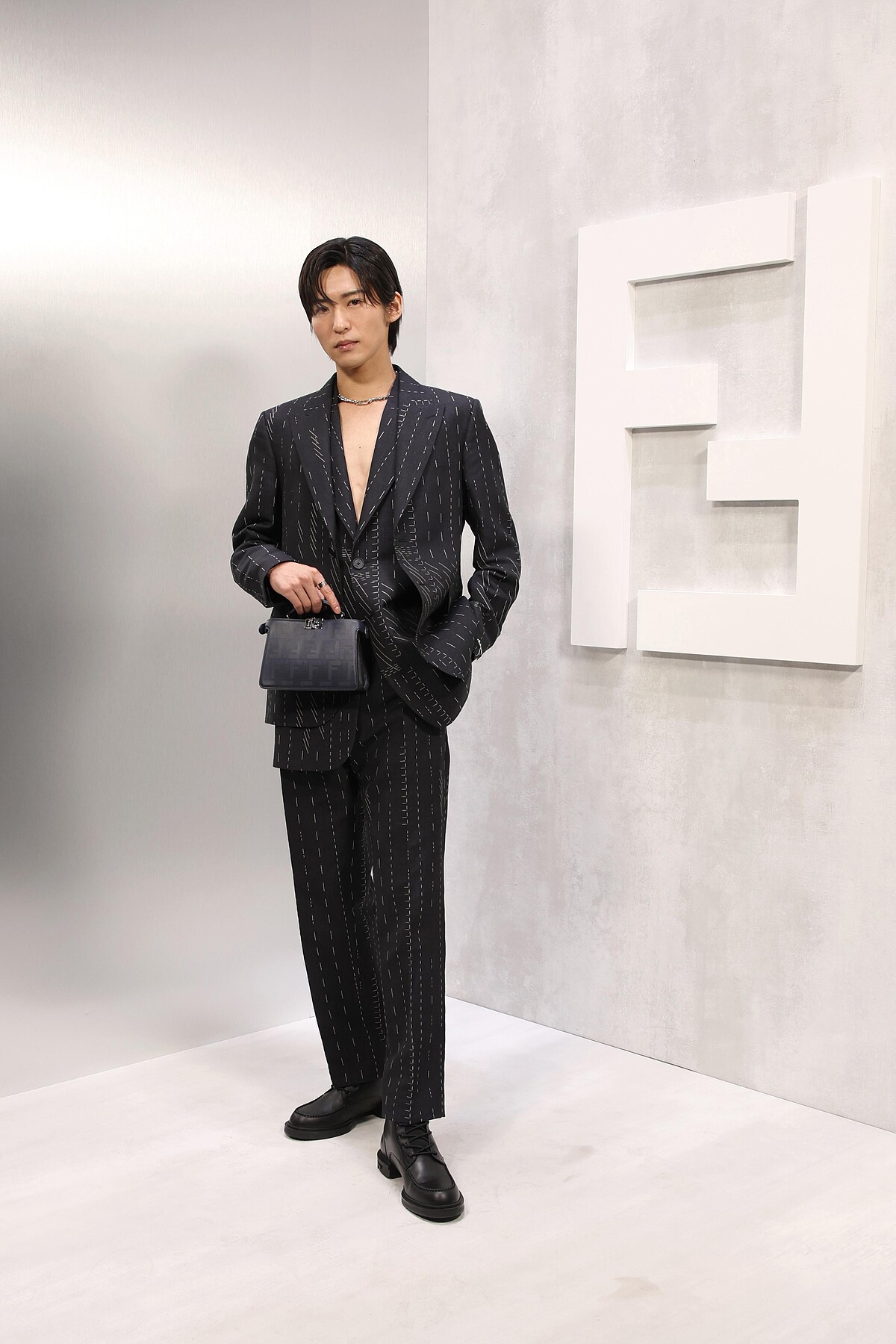 日本男星、同時也是團體Snow Man成員的Ren Meguro目黑蓮,於大秀上穿著線條設計感的西裝套裝,胸前深V悄悄展現性感一面。
