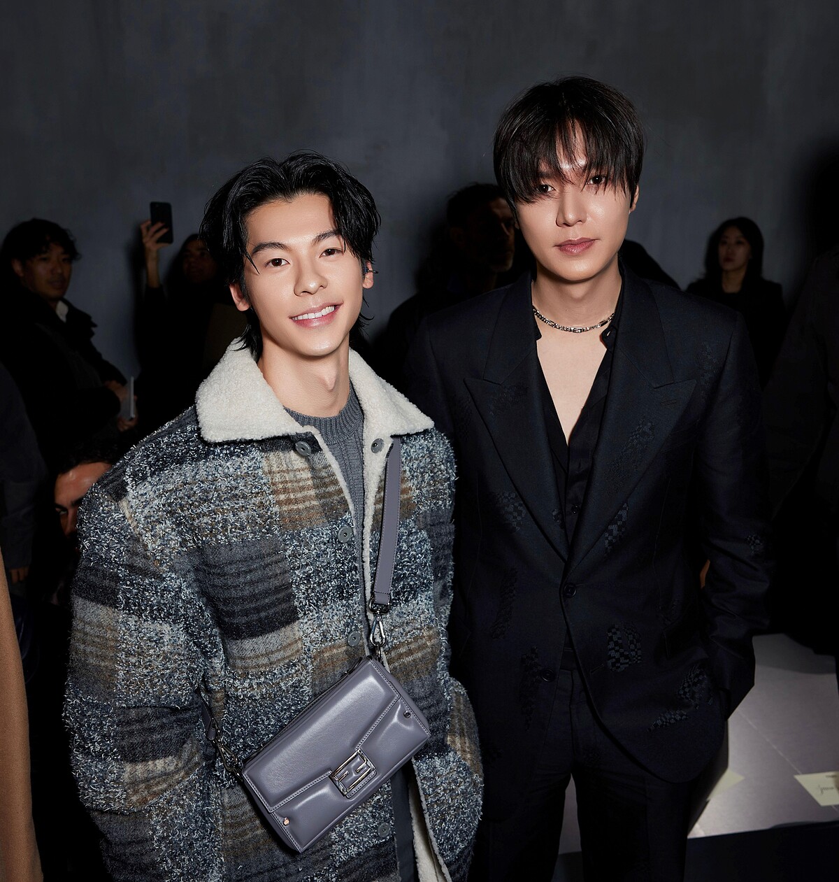 許光漢今年才剛宣布晉升Fendi全球男裝大使,馬上努力工作,前往米蘭參加新身分後的首個大秀。機場穿搭以休閒的深灰色套裝亮相,秀場上則是穿著拼接格紋絨毛外套造型穿出暖男感。