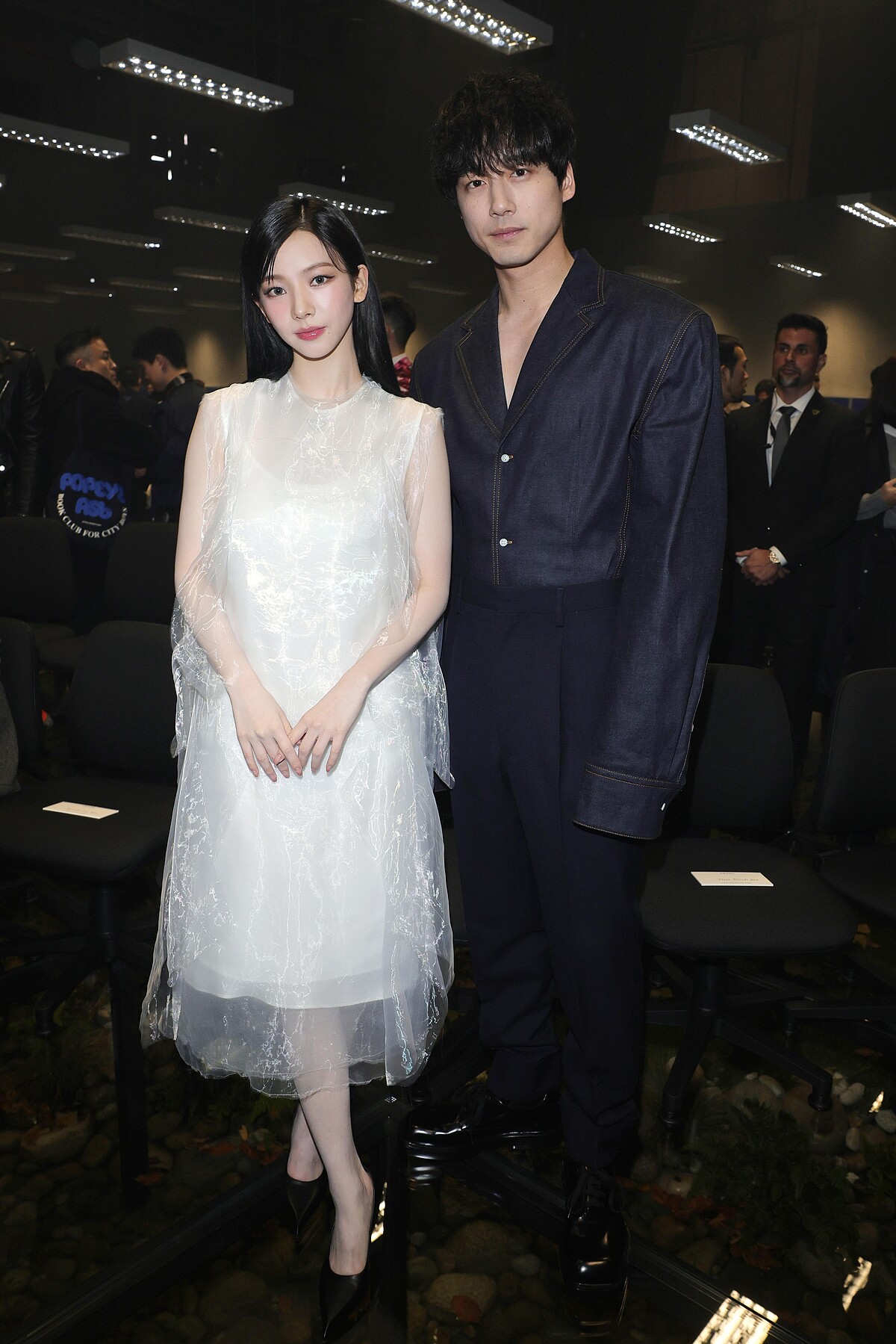 Aespa成員Karina現身Prada 2024秋冬男裝大秀成為現場最「嬌」點,她身穿飄逸的白色透紗洋裝,可愛與仙氣都令人難以招架!秀場上她還和坂口健太郎一起合照。