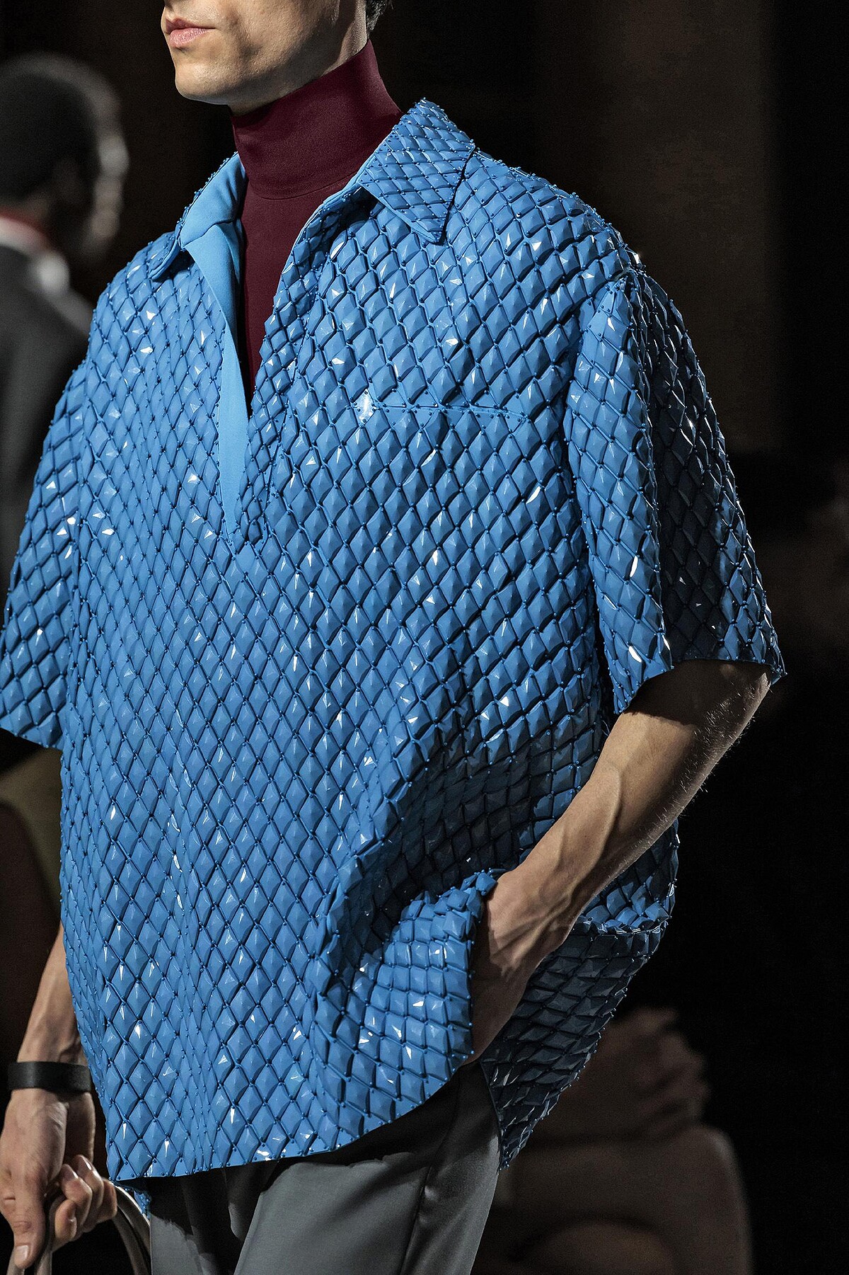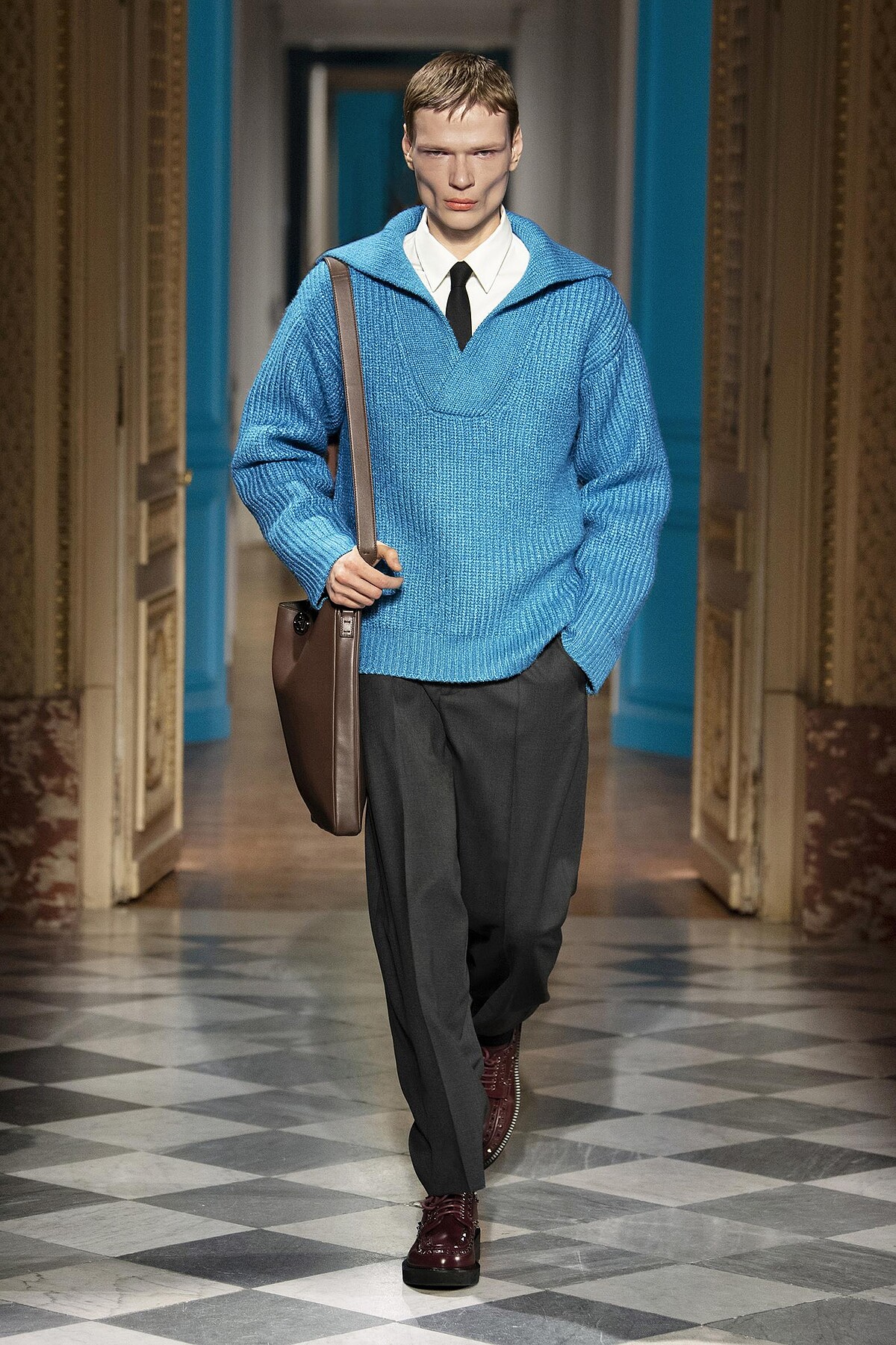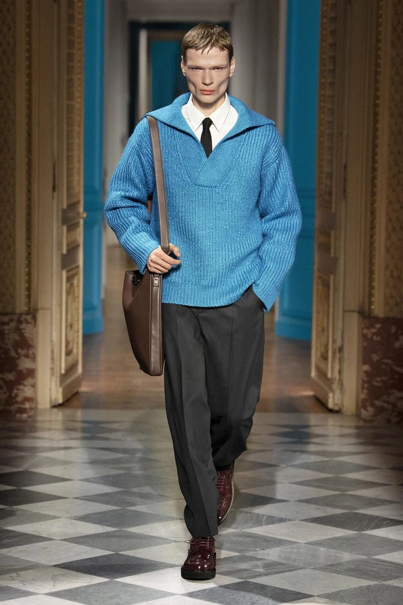 創意總監Pierpaolo Piccioli於Valentino 2024秋冬男裝重塑了藍色之於男性的意義,雖然藍色在現代社會上普遍代表男性,但其實在更久遠的歷史中一直被認為是更有女性氣質的。在Valentino 2024秋冬男裝系列中運用了天藍色來表示自由與思考,而不是僅有陽剛的意味而已,搭配上柔和的剪裁,打造出溫文儒雅的紳士形象。
