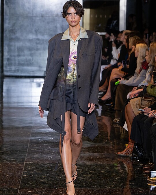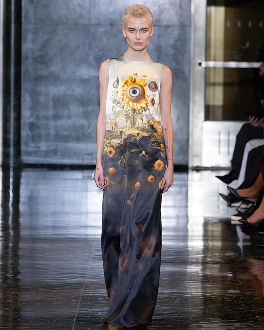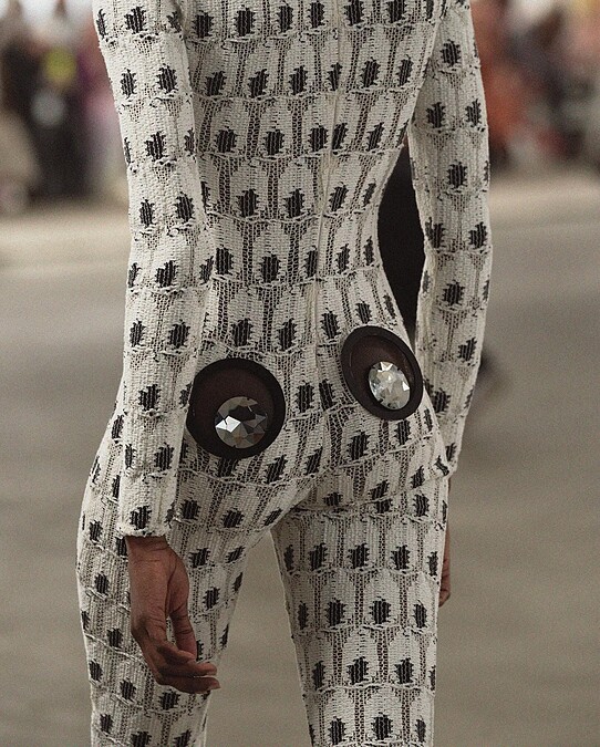 由Oscar de la Renta雙人創意總監Laura Kim以及Fernando Garcia所創立的設計師品牌Monse,可能不一定聽過其名,但或許已經在韓國女團們的身上先瞥過一眼。Monse品牌設計多以男裝的版型、剪裁為基調,再加入許多天馬行空的元素與想像。2024秋冬大秀直接包下洛克斐勒大樓,並以1950年代的科幻電影、UFO話題為靈感,迷幻的色彩與外星人的組合成為服裝的印花,秀末模特兒們還是從電扶梯上下樓謝幕,服裝和舞台效果都頗有新意。