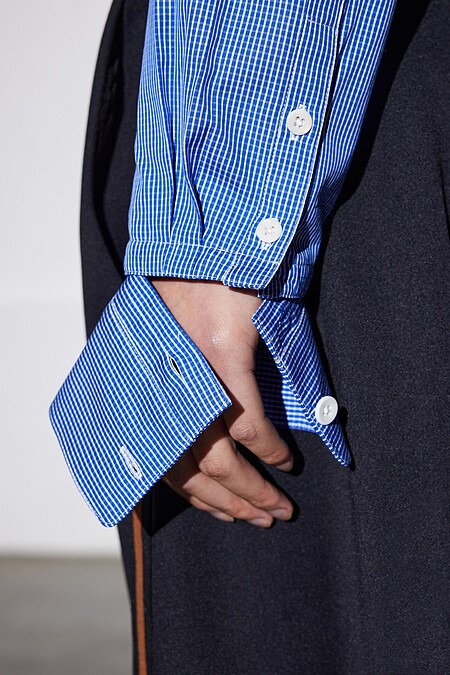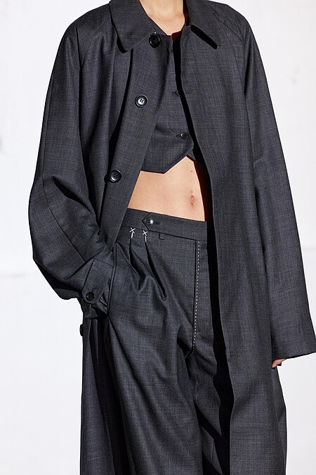 不難發現,Tibi的服裝也是以極簡風格為主,俐落乾淨且不廢話的實穿主義。但是,近看的話,會發現一些小可愛細節,像是宛如KAWS「XX」的表情縫線、重疊袖口的設計⋯⋯極簡卻不呆板。