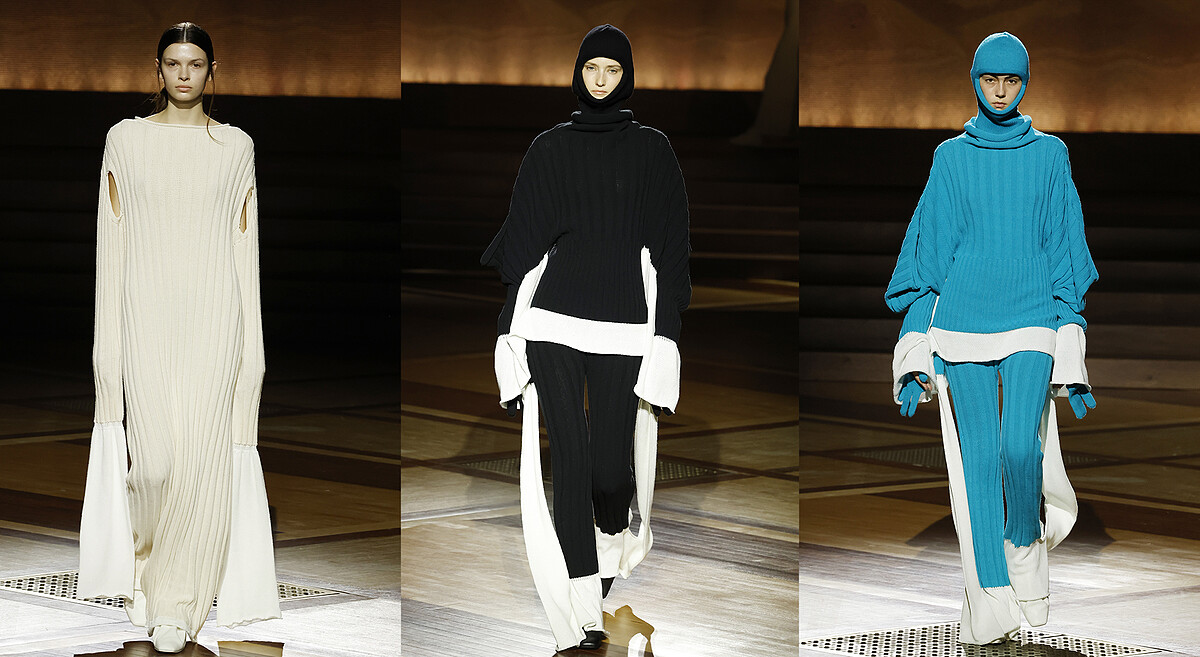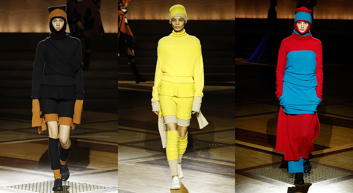 充滿趣味的BEHIND THE SCENES系列,則分別以融入常在製作服裝過程中被捨棄的“廢紗”材質,加上無縫針織服裝打造出物盡其用的驚豔之作;至於雙層構造一氣合成的INTERPLAY編織系列,設計上有著不同開口、多層次色塊堆疊與獨特輪廓,讓單品穿法多變得以達到著裝樂趣最大化。