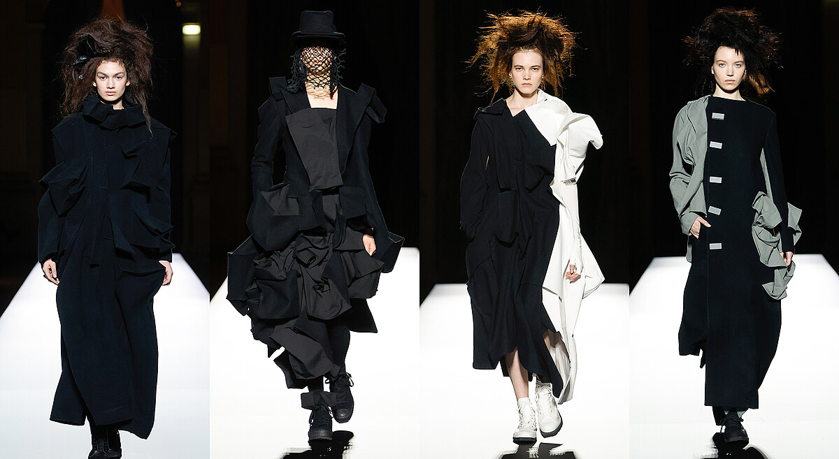 在黑白灰經典色系基調下,依舊無法忽視山本耀司YOHJI YAMAMOTO,有如時裝魔法師般透過系列作品使大家對時裝有更多的深刻思考性,不需明星光環就能以先鋒之姿釋放強大渲染力。