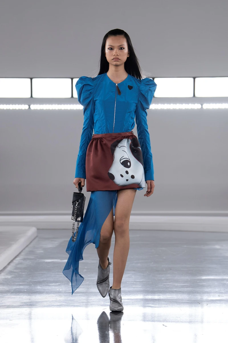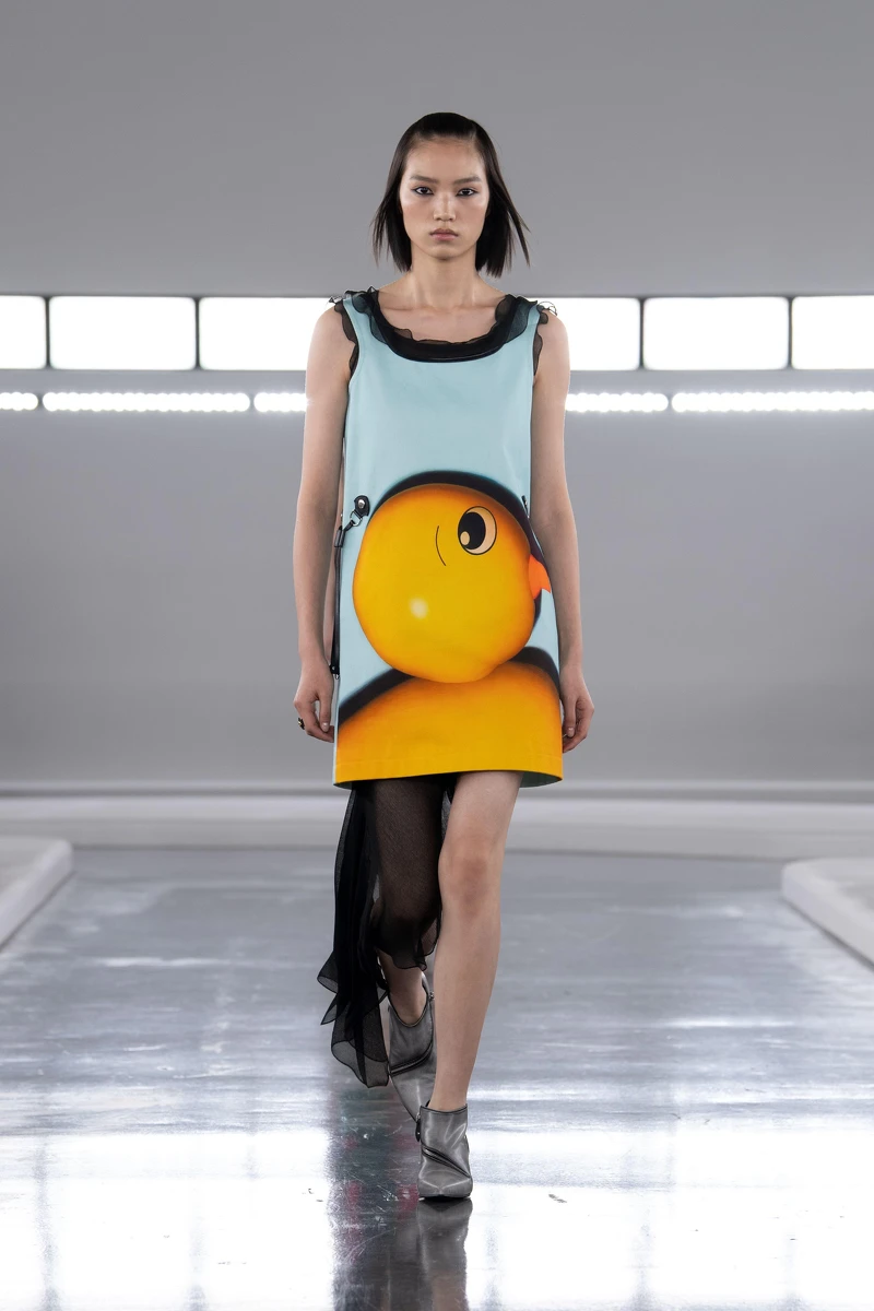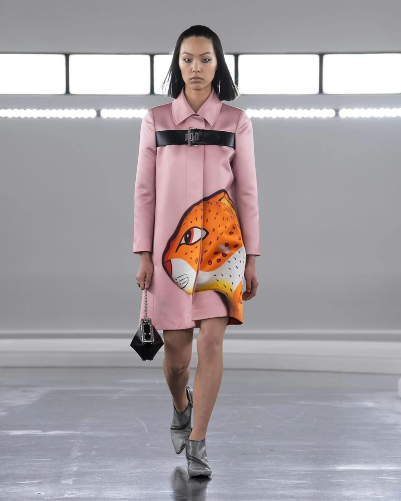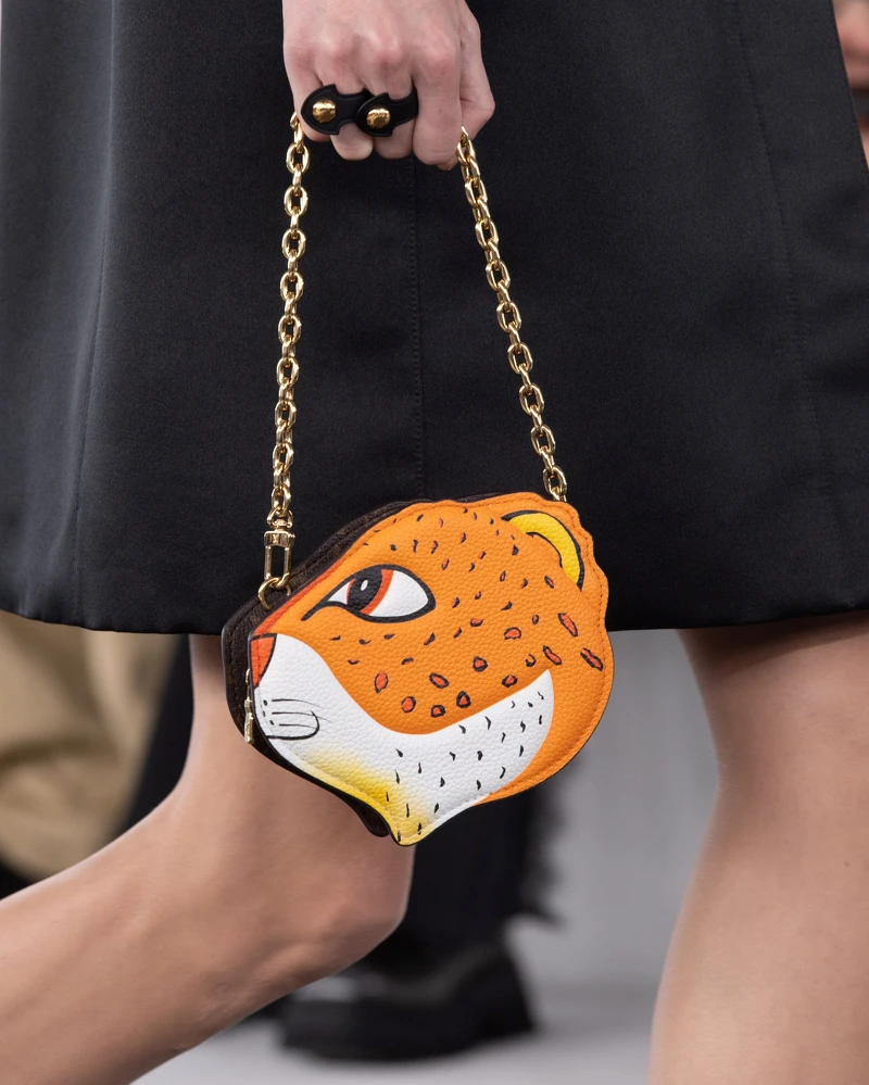 從前導預告中飄於上海市中心的巨大動物氣球便已指出本季的最大亮點,孫一鈿的藝術作品以巨大的印花或刺繡呈現於成衣系列,花豹、小鴨、兔子皆以充氣氣球的立體模樣,成為洋裝上搶眼奪目的印花,並且每隻動物分配到一款經典手袋,包括鴨子On The Go手袋、斑點狗圖案的Mini Square硬箱、還有豹子大頭形狀的鏈條手袋……有了這些萌萌的新角色加入,整個系列都生動了起來!