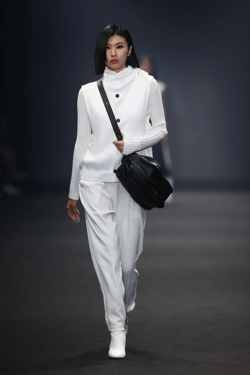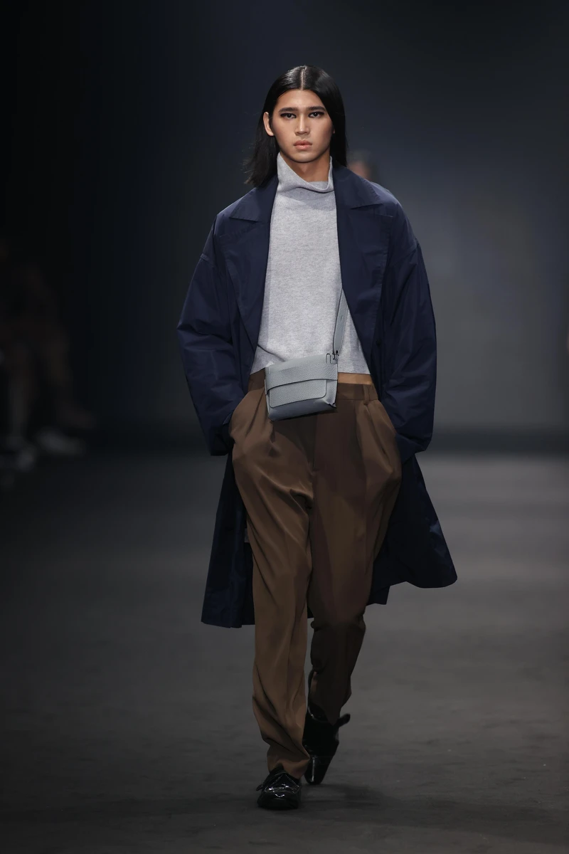 延續品牌的實用主義核心精神與獨特審美觀點,本季選用高科技塗層棉、再生聚酯、再生羊毛、真絲、克什米爾… 等豐富材質;功能性的面料以精緻細節呈現,整體造型配搭 RAWPIECE 前衛時尚包款,在傳承與顛覆之間創造新的 平衡,於風格迥異的質感之間,為多元輪廓注入豐富的視覺層次。