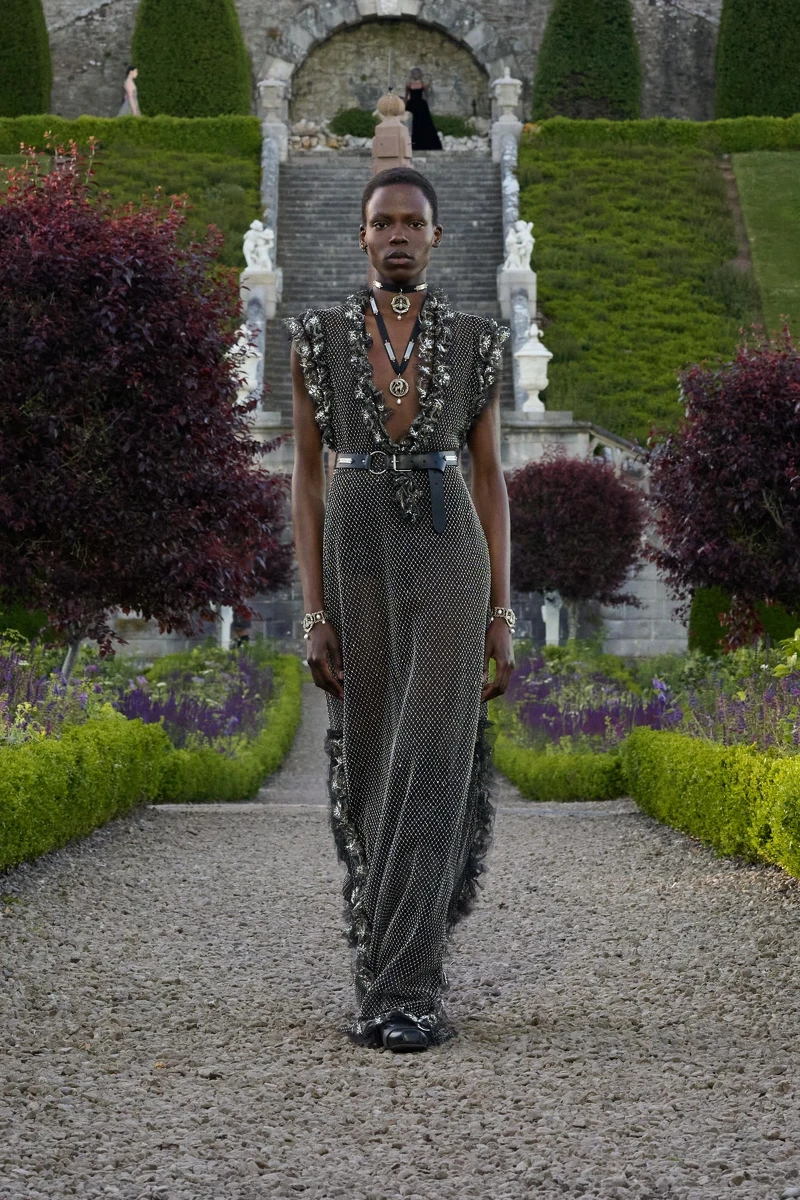 1955年,迪奧先生於蘇格蘭的伯斯郡發表新作,為追尋迪奧先生留下的足跡,Maria Grazia Chiuri時隔69年帶領Dior再度回到蘇格蘭辦秀。2025早春系列時裝秀於蘇格蘭高地德拉蒙德城堡的花園舉行,這座城堡最早始建於15世紀末,以設計複雜、縝密規劃與細心維護的花園聞名,是當地的觀光景點,選址在這裡,呼應了本季運用的花卉元素,同時也是象徵Maria對蘇格蘭歷史文化的敬重。
