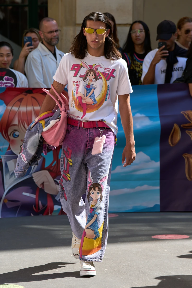 Doublet主理人井野將之(Masayuki Ino)在2025春夏男裝週又帶來了有別於其他品牌的特殊主題,本季他移植自日式風格裡滿滿的動漫元素,以及偶像應援文化,在服裝中處處可見動畫人像、可愛日文字體與漫畫的排版風格,連粉絲們用來裝偶像小卡的卡片套也有!是本季時裝週不能錯過的一場精采可愛大秀。