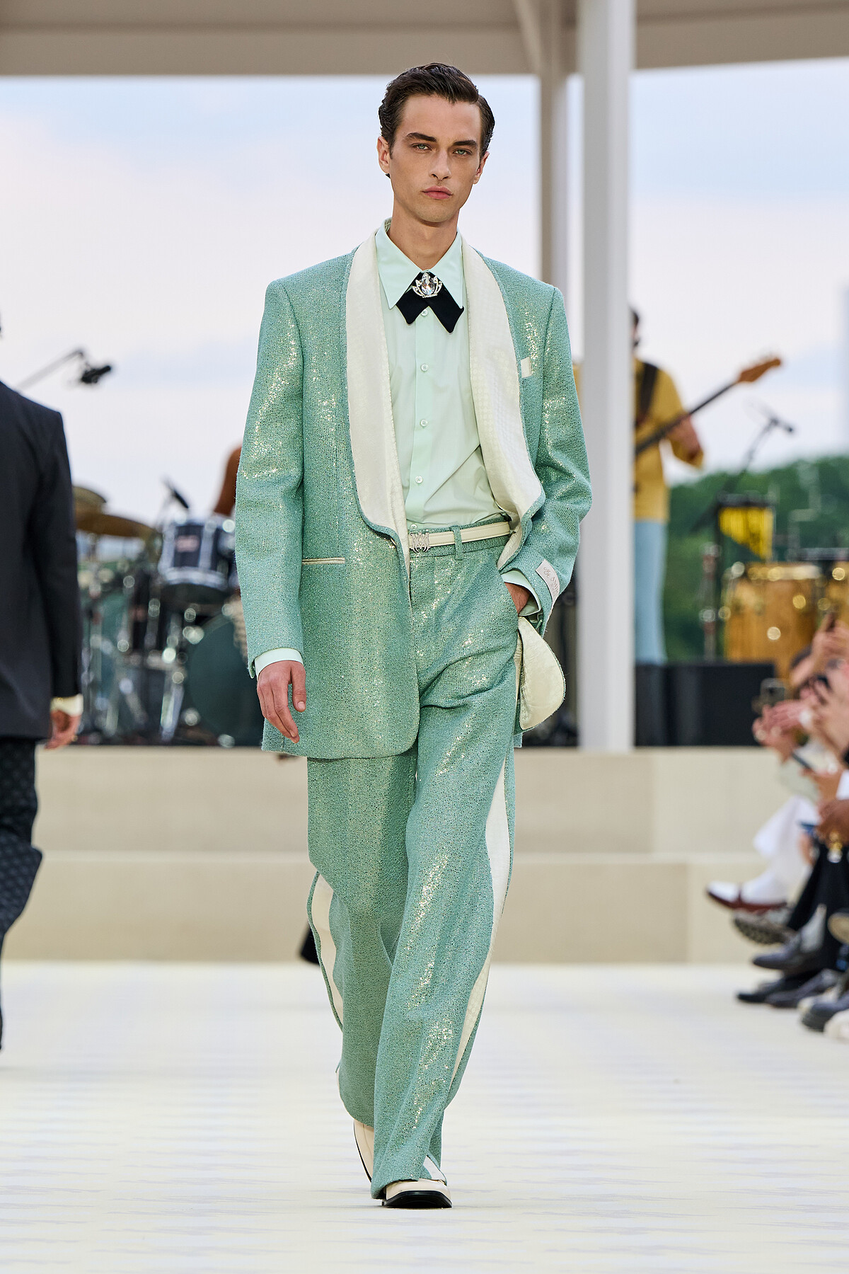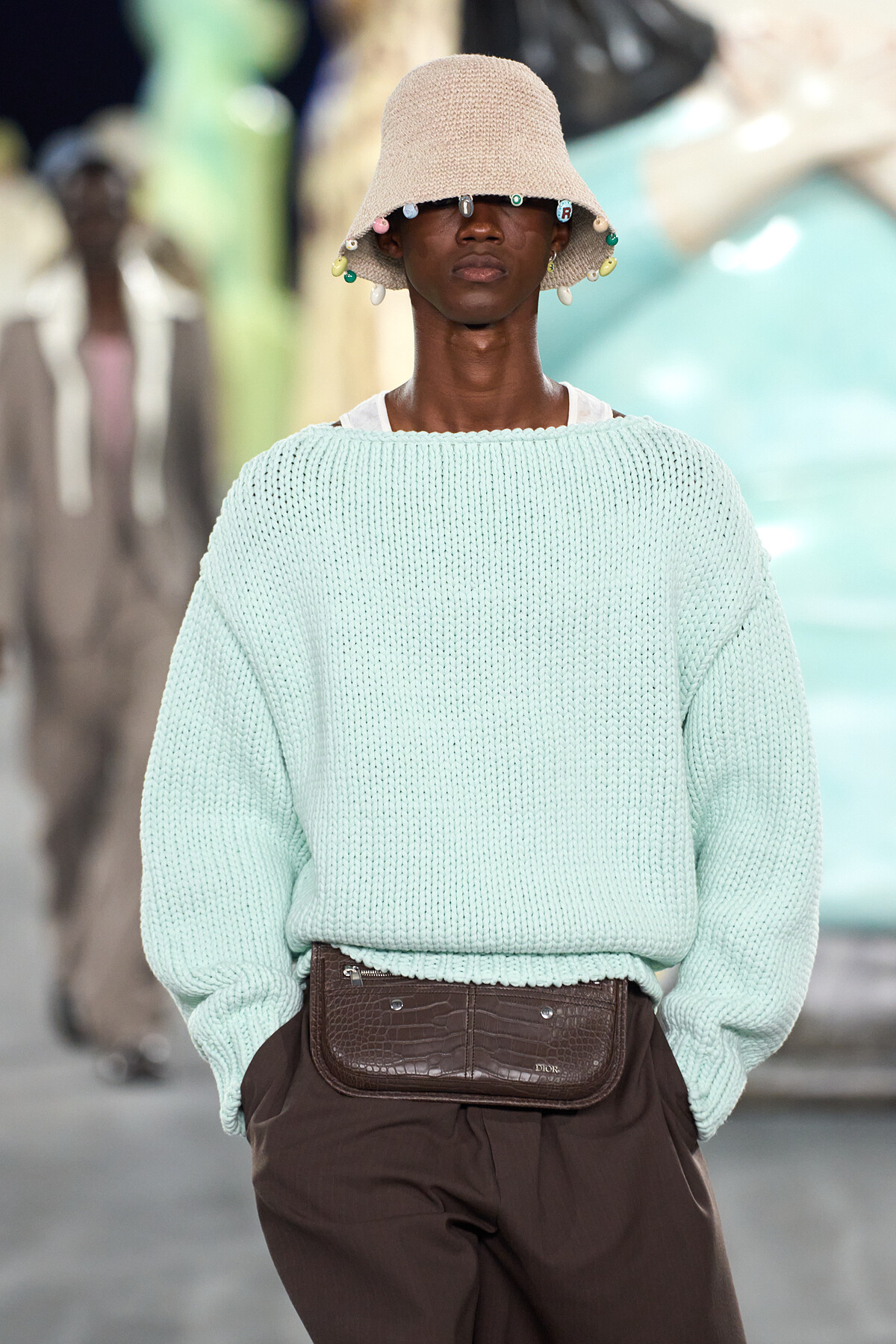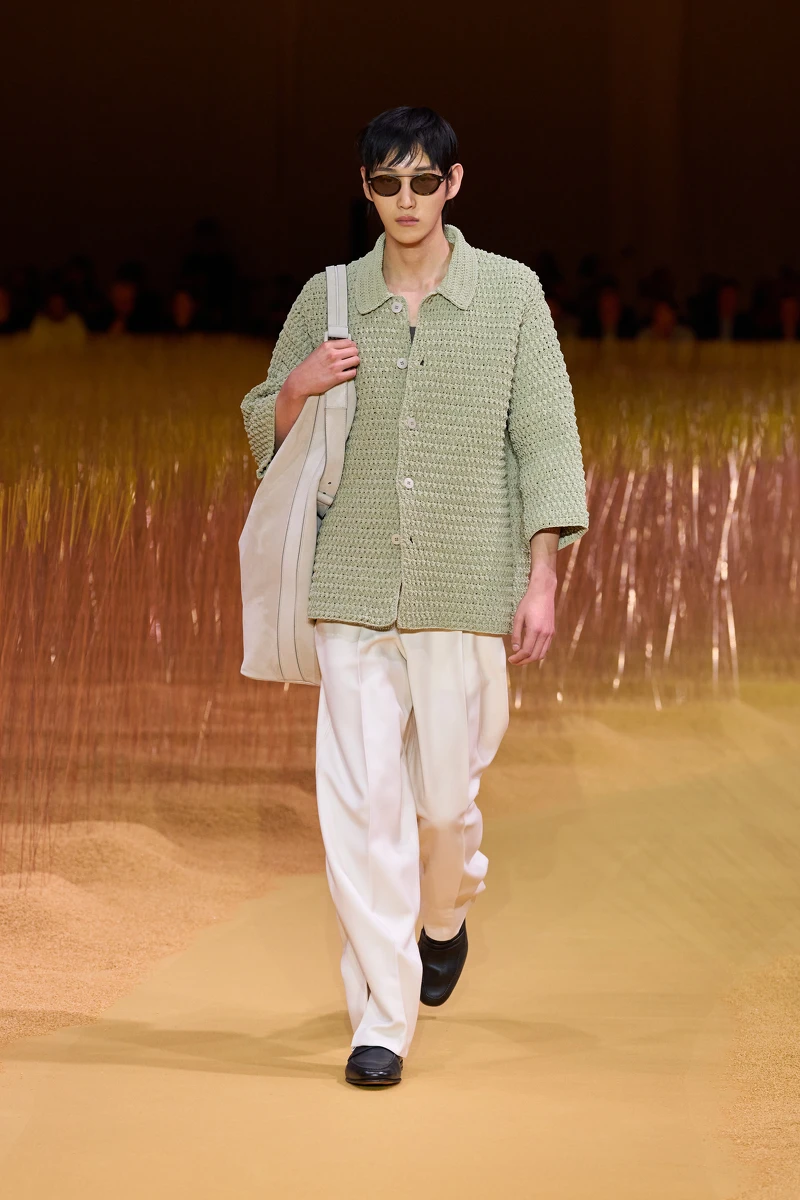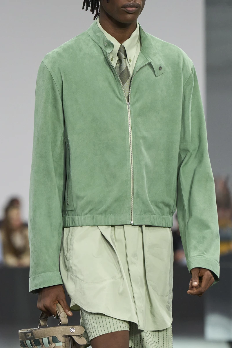 2025春夏男裝週中,猶如冰淇淋般的涼感綠成為最具代表性的顏色。這種清新且充滿活力的色彩在各大秀場上大放異彩。Dior Men、Emporio Armani、Fendi 等品牌紛紛推出涼感綠的設計造型,從外套到配飾,都可窺見這種令人眼前一亮的色調。涼感綠的應用,不僅為本季帶來了夏日的降溫感,更在視覺上給人一種煥然一新的清新感受。