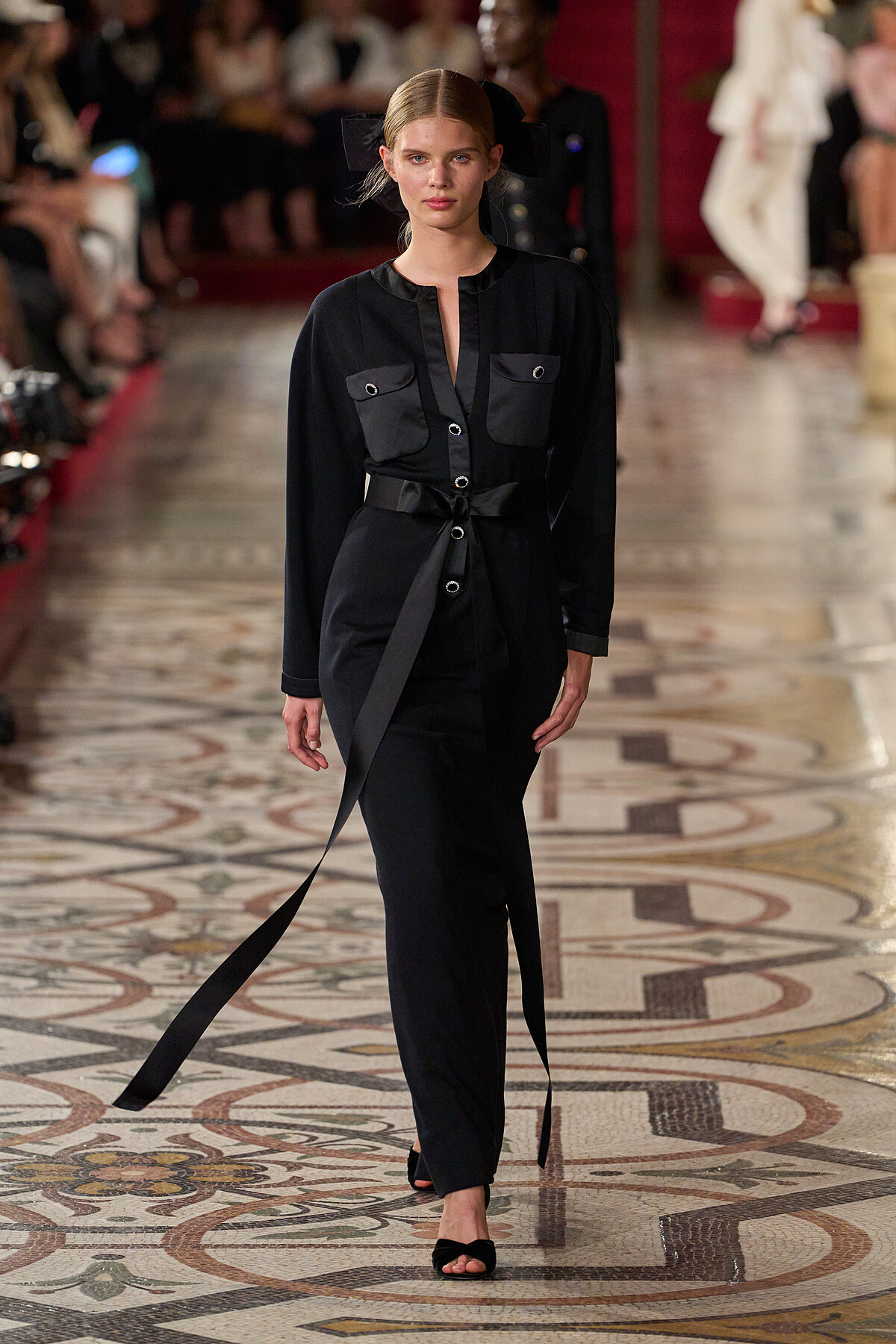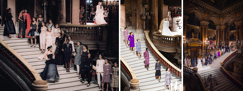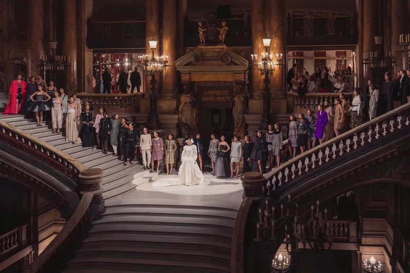 在6月25日接近12點的時候,像是芭蕾舞之夜一般,鈴聲打破了歌劇院大樓梯上的喧囂。儘管氣溫升高,觀眾們依然身穿華麗的斜紋軟呢套裝,從俯瞰Charles Garnier傑作的陽台緩緩走向座位。法國導演Christophe Honoré被聘請重新構思歌劇院的佈景,將鍍金劇院的紅色天鵝絨包廂搬到走廊。儘管自Karl Lagerfeld時代以來的香奈兒秀場地大皇宮最近剛翻新,但由於即將舉行奧運會擊劍比賽,需要尋找新的場地。嘉賓們被鼓勵早早到達,如同歌劇院觀眾般漫步於這座已有149年歷史的長廊。