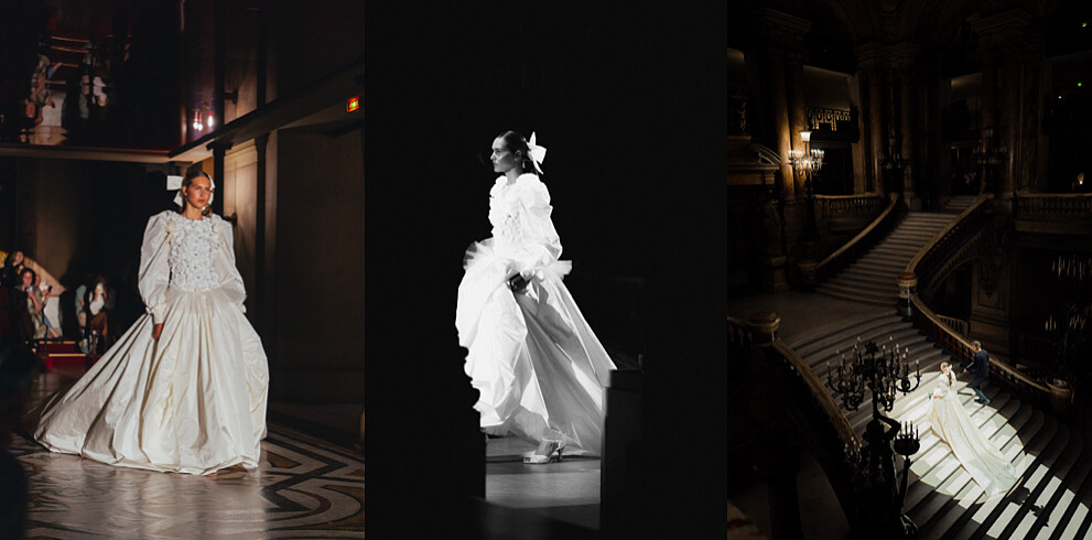 Charles Ganier所設計的巴黎歌劇院,於1875年竣工,是一座壯麗且富含創新精神的象徵。他運用了大理石、馬賽克和紅色天鵝絨等奢華材質,彰顯了卓越的建築技藝和深厚的文化底蘊。這座義大利式風格的禮堂內,內部天花板是馬克·夏卡爾( Marc Chagall ) 於 1964 年繪製的畫作,自1923年以來便讓巴黎歌劇院享有法國歷史遺產的地位。歌劇院的設計也讓本秀的音樂更顯迷人,重拍的響音與輕柔女聲的呢喃,讓觀眾盡情享受這場聲光俱佳的時尚盛宴。