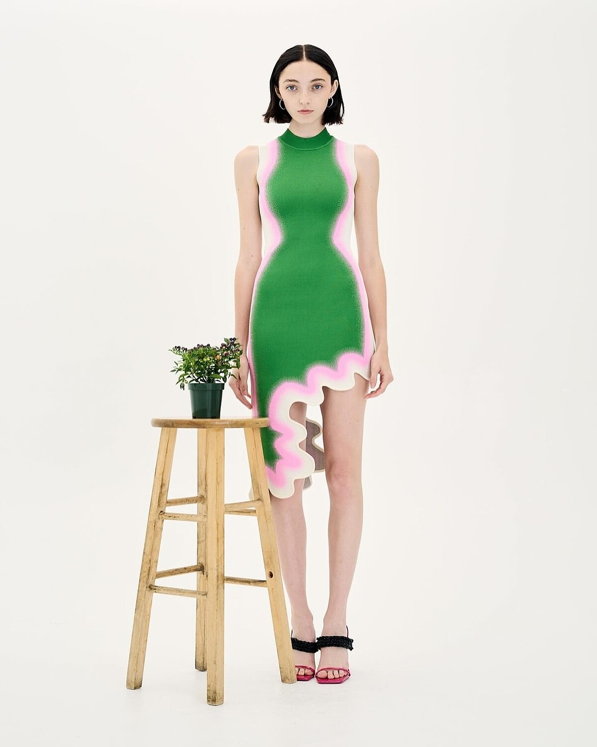創辦人Wei Lin,承襲家族的針織產業衣缽,參入了奇幻和甜美,把既定印象中厚重的針織,做出俏皮且輕巧的模樣,並且把印花也應用到針織面料上,多巴胺式的用色配置,翻完出針織不一樣的個性。