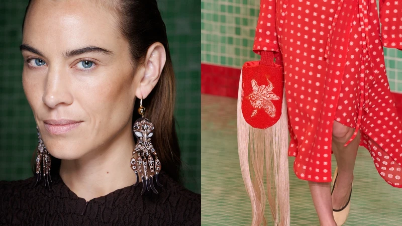 選址Skylight at The Refinery辦秀,Tory Burch把場地換上了清爽的薄荷綠磁磚壁紙,營造出在泳池畔的氛圍,也預告著等等即將出場的造型概念。首先,最直觀的移植泳衣輪廓,改以繁複的亮片刺繡工藝,走起來又有波光粼粼的效果,也像是池水在陽光下微波蕩漾的模樣。