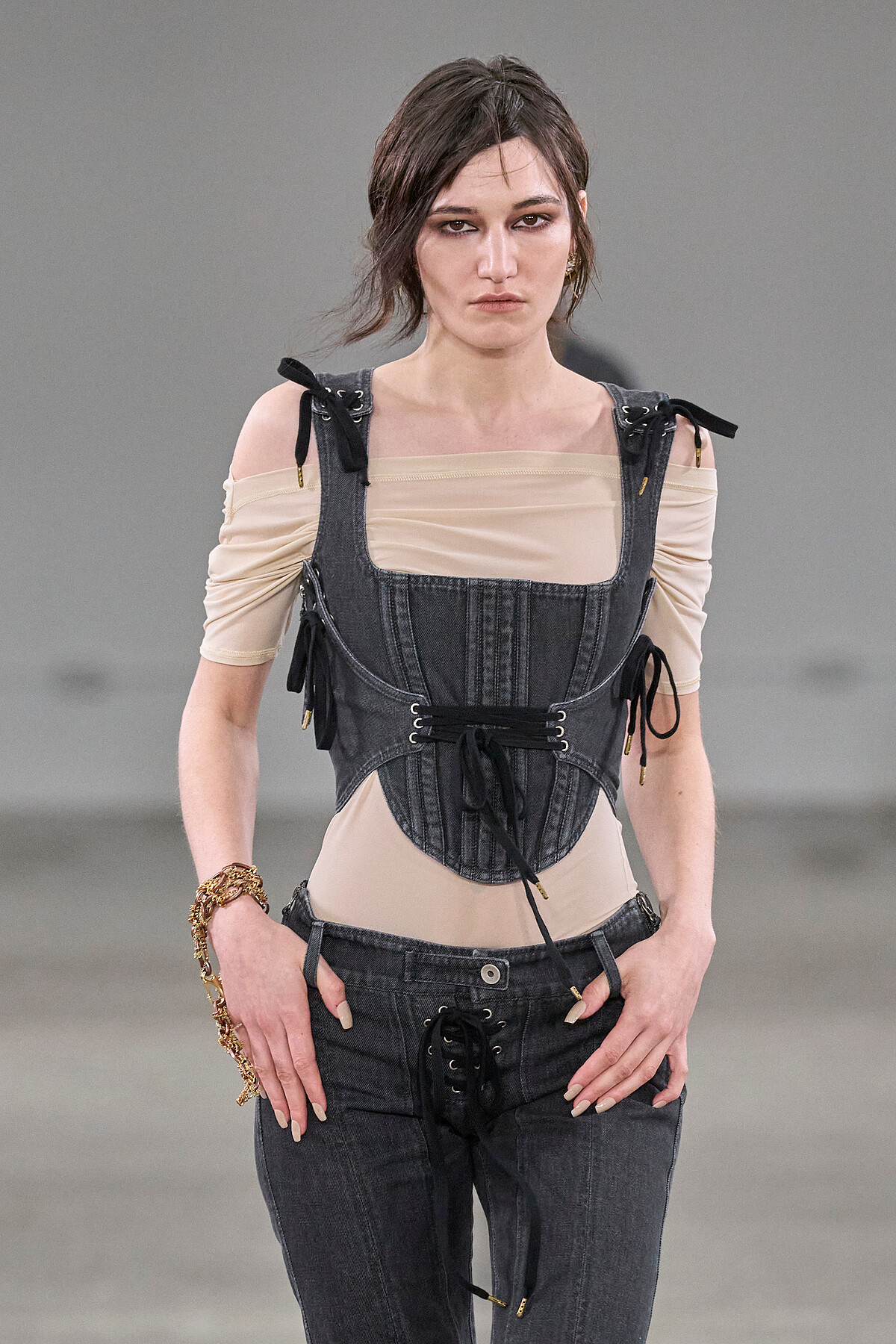 Nensi Dojaka 是來自阿爾巴尼亞的設計師,以其細緻的透視面料和解構性設計而著名。她的作品融合了柔和的剪裁與前衛的細節,展現出獨特的女性美學。Nensi 在2021春夏系列首次亮相,隨即吸引了 Rihanna、Bella Hadid、Hailey Bieber 等名人的青睞,迅速引起時尚界的關注。