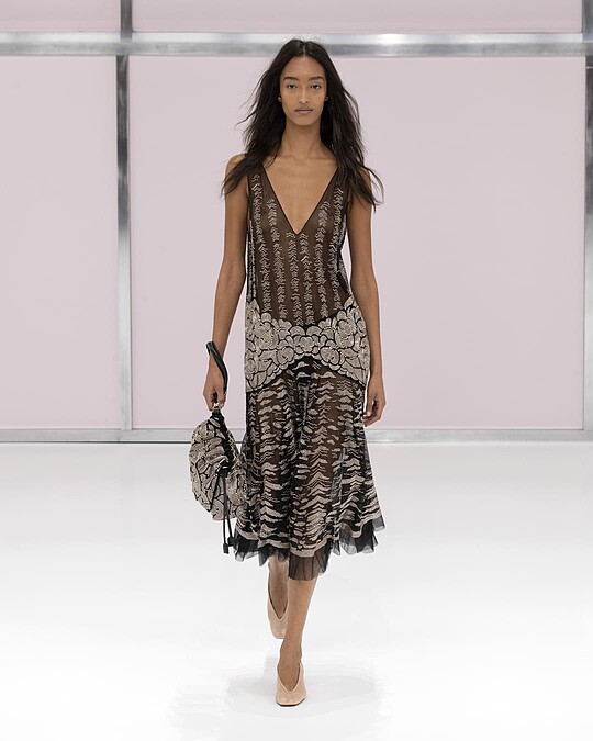 此次服裝重塑二○年代的現代主義,Virginia Woolf 所著作的《戴洛威夫人》(Mrs Dalloway)與 F. Scott Fitzgerald 的《大亨小傳》(The Great Gatsby)都成為靈感來源,看著一件件絕美的洋裝,隨著模特兒們的姿態擺動,讓人的情感回到了那美好的過往,沉浸在黃金年代的浪漫想像之中,恣意遊走。