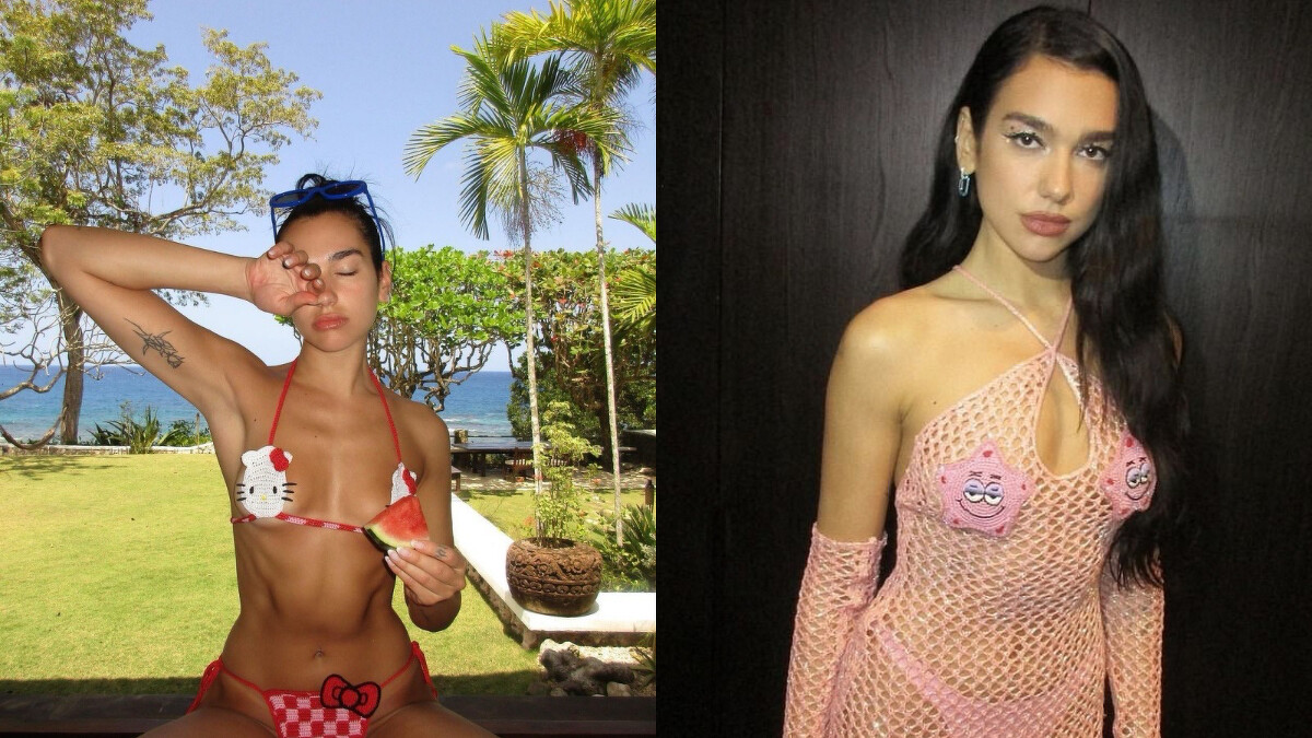 與卡通、漫畫、電影等聯名是GCDS常備的一項設計主題,而GCDS與Hello Kitty的聯名其實早已推出過,或許你也曾經看過!Dua Lipa曾多次穿上由GCDS推出的鉤織比基尼,其中這款Hello Kitty的款式,當時在社群造成轟動,後來她也接續示範了派大星的款式。