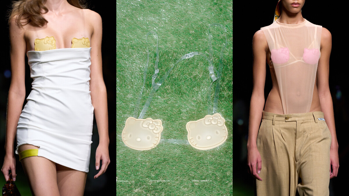GCDS日前於米蘭時裝週發表2025春夏系列,Hello Kitty再度現蹤!以單色方式被設計成全新的比基尼,但比以往更加性感的是,它這次使用的是透明肩帶,搭配在低胸或是透視服裝中,看起來就像是Hello Kitty造型的胸貼一般。
