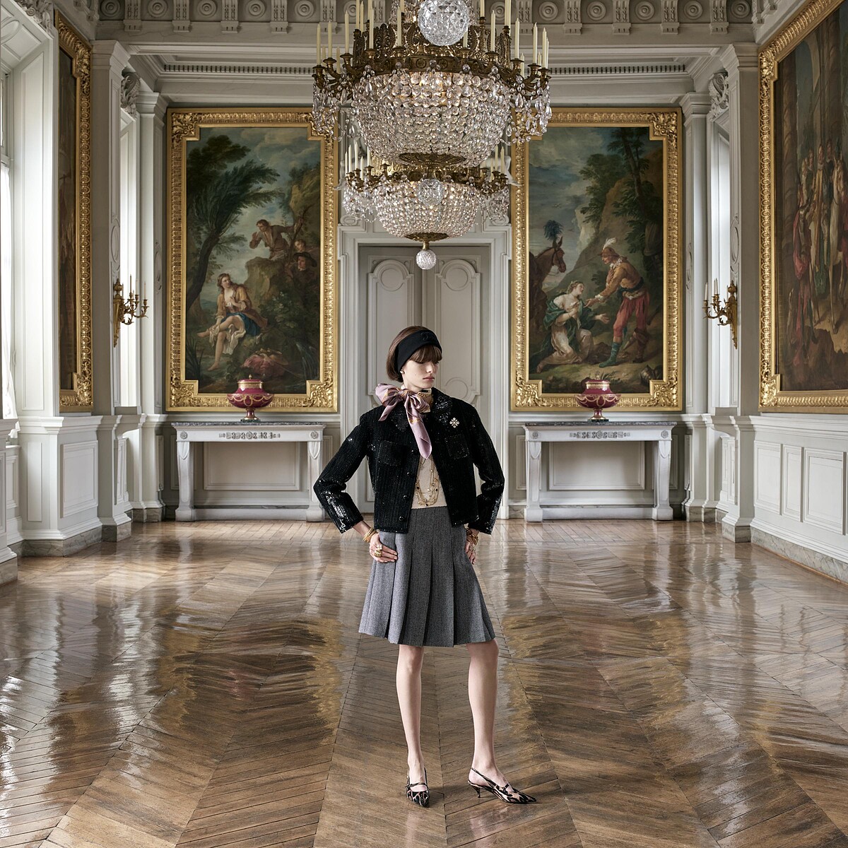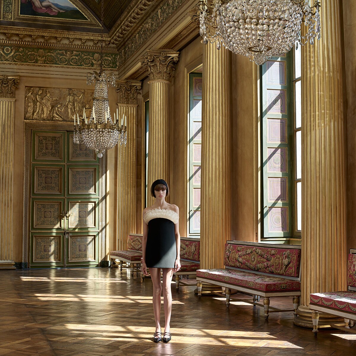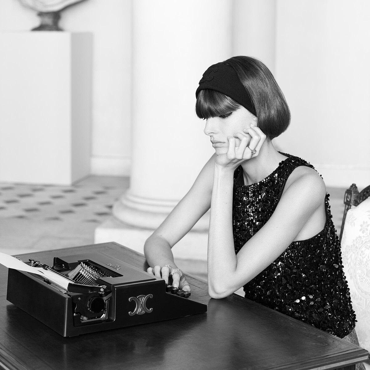 鏡頭引領我們來到華麗的貢比涅城堡,爲CELINE 2025夏季女裝系列拉開帷幕。裝飾著TRIOMPHE標誌的老式打字機,上面寫著「UN ÉTÉ FRANÇAIS」(暫譯:法國之夏),場景的開始就像是一封書信,承載著給愛人或朋友的青春浪漫絮語。Hedi Slimane對年輕世代浪漫青春的長期迷戀,為當前系列注入了新的活力,繼續形塑他心目中精緻法式魅力的新定義,並以當代巴黎優雅氣息重振1960年代懷舊之情。2003年,Slimane記錄了從聖日耳曼到南肯辛頓的倫敦和巴黎青年場景。他捕捉了當時出現的一種獨特風格:年輕、富裕、具有獨立情感的女性,她們經常穿著娃娃裝現身英國音樂會現場並備受矚目。