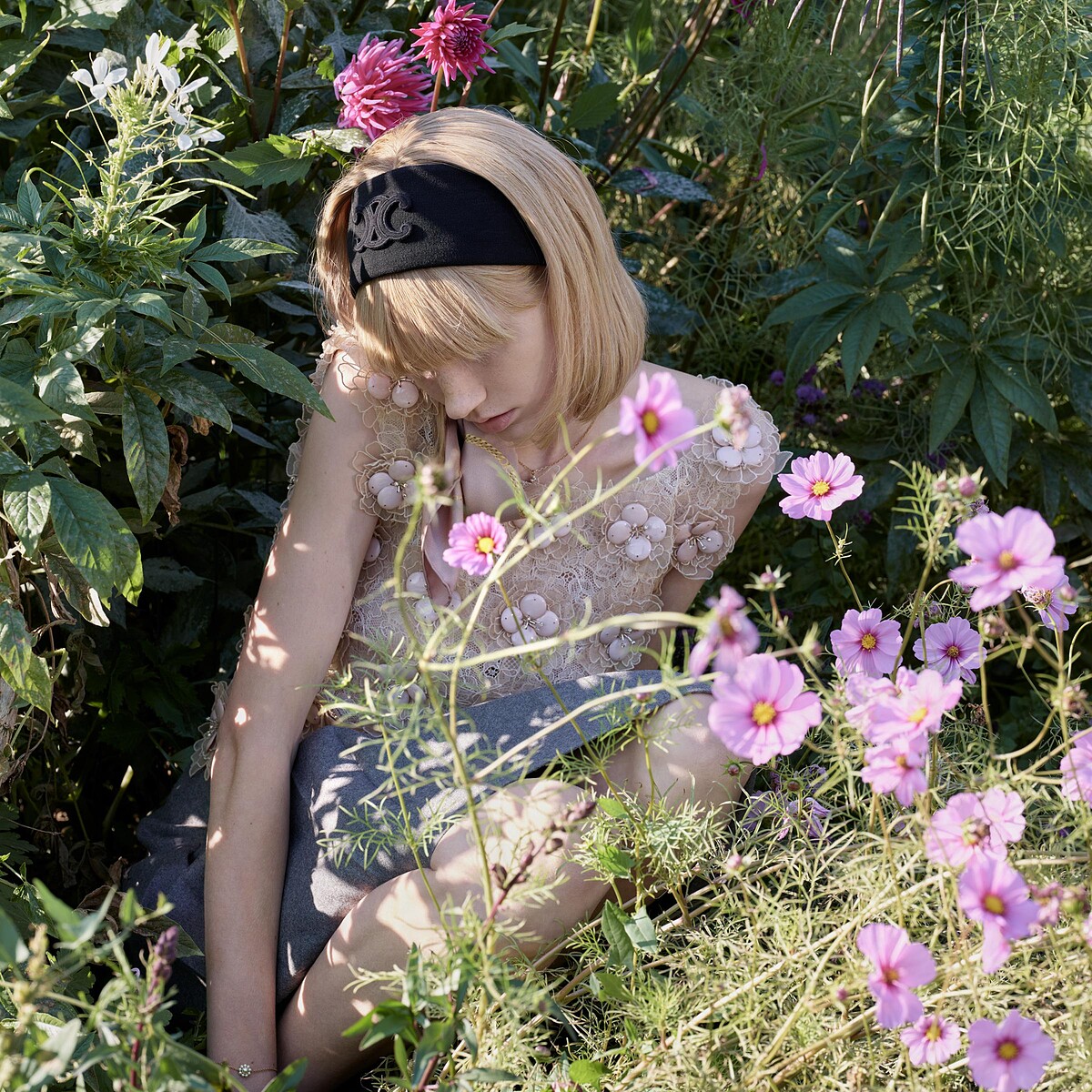 UN ÉTÉ FRANÇAIS系列的CELINE青春女孩,額間的短瀏海、長或短鮑伯髮型,再戴上黑色髮帶完善了60年代復古別緻的造型。尖銳的眼線來自品牌歷史上首個美妝系列CELINE BEAUTÉ,描繪了年輕時代的馮絲華哈蒂(Françoise Hardy)的記憶和憂鬱,捕捉了她全盛時期的活力和她最近失去的沉痛,Hedi Slimane在此獻上其對這位傳奇歌手在法式風格和音樂的持久影響致敬。學院風百褶短裙套裝的回歸,以輕盈的夏季羊絨新編織而成或手工刺繡;短版花呢外套、百褶裙、鉛筆裙、迷你短裙、寬大的白色荷葉領、頸項上的精緻領巾,為結構化的套裝增添了一抹浪漫與一絲少女魅力。漆皮後繫帶貓跟鞋則以蜥蜴、鱷魚、蟒蛇壓紋,為每套服裝增添一抹奢華氣息與異國風情;疊搭的項鍊搭配亮片刺繡無袖單品,帶來一貫的華麗氣息。學院風的著裝伴隨著《FEMME FATALE》疏離呢喃的樂聲產生了搖滾共鳴,服裝輪廓形轉向剪裁簡潔也更趨於女性化,娃娃裙裝上飾有多層的亮片與水晶刺繡閃爍著金屬光芒、雙色羽毛刺繡、花卉刺繡皆由CELINE工坊手工刺繡打造,並將整個系列推向了一個更加精緻的領域;手工鉤編並飾有水晶和亮片夏季連衣裙靈感則來自Jane Birkin,展現CELINE工坊的精湛製衣工藝。終曲則以優雅剪裁的黑色晚禮服在夜幕降臨後綻放光芒,直至神化。It Bag專業戶CELINE推出全新TEEN JOSÉPHINE手袋,並可於CELINE工坊接受珍稀皮革訂製服務。