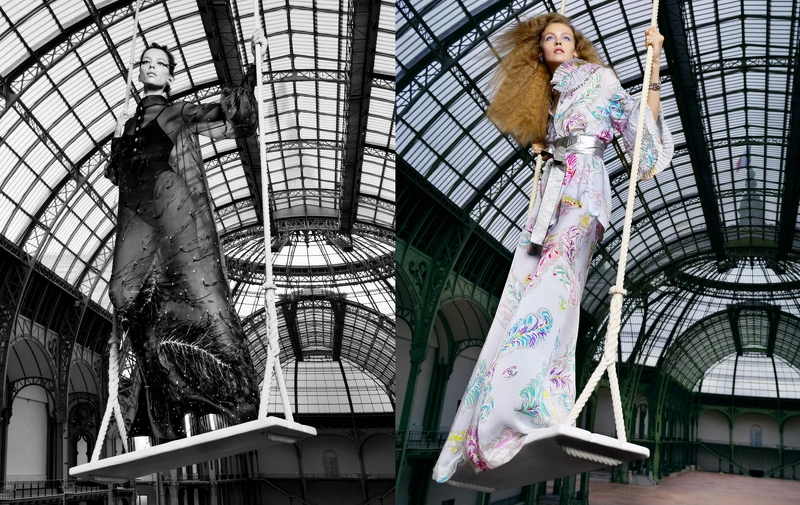 如今,在歷時多年的整修之後,CHANEL終於回到大皇宮,由攝影雙人組Inez&Vinood拍攝的影像以大皇宮的正廳為場景,模特兒Nigina Sharipova身穿黑色緞面連身長褲搭配羽毛領飾,氣勢十足地推開了以CHANEL創始人命名的”Gabrielle Chanel”入口大門,在這傳奇性的玻璃屋頂下就座,象徵CHANEL即將迎來全新扉頁。
