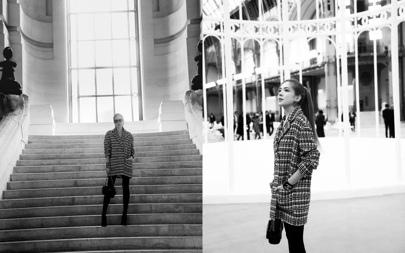 這麼有紀念性的時刻,自然吸引品牌大使與好友共襄盛舉,時隔一年又來到巴黎看秀的許瑋甯,則是穿上黑白斜紋軟呢外套式洋裝、黑色褲襪及寬版手環,搭配俐落的馬尾與簡約的妝容,打造出既優雅又隨興的迷人風采。