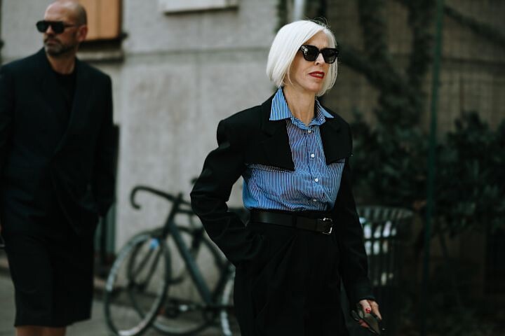 黑與藍色的搭配也是秀場外的一大趨勢,跳脫黑與白的框架,耐看又不無聊。