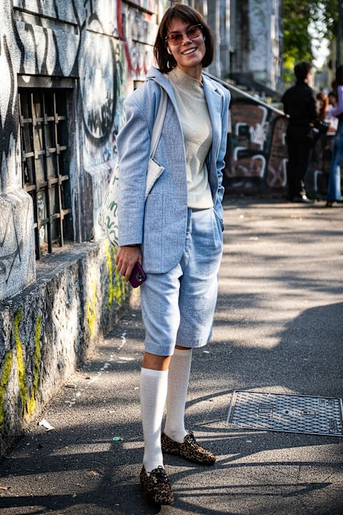 用襪子搭配已不是什麼新鮮事,本季在秀場外則能看到越來越多的型人穿著短褲搭配長白襪的造型,俏皮又優雅的摩登氣息,無論男女都適合!