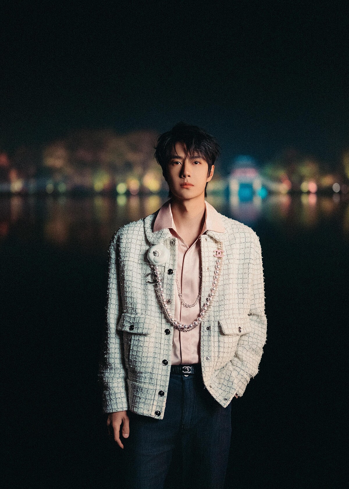 Chanel品牌大使王一博出席香奈兒杭州發佈會,有「女裝男裝的神」稱號的他,果然身穿一件粉色襯衫外罩白色斜紋軟呢外套,搭配上大串珍珠項鍊,仍舊顯得貴氣又帥氣,就像是從漫畫裡走出來的男主角。