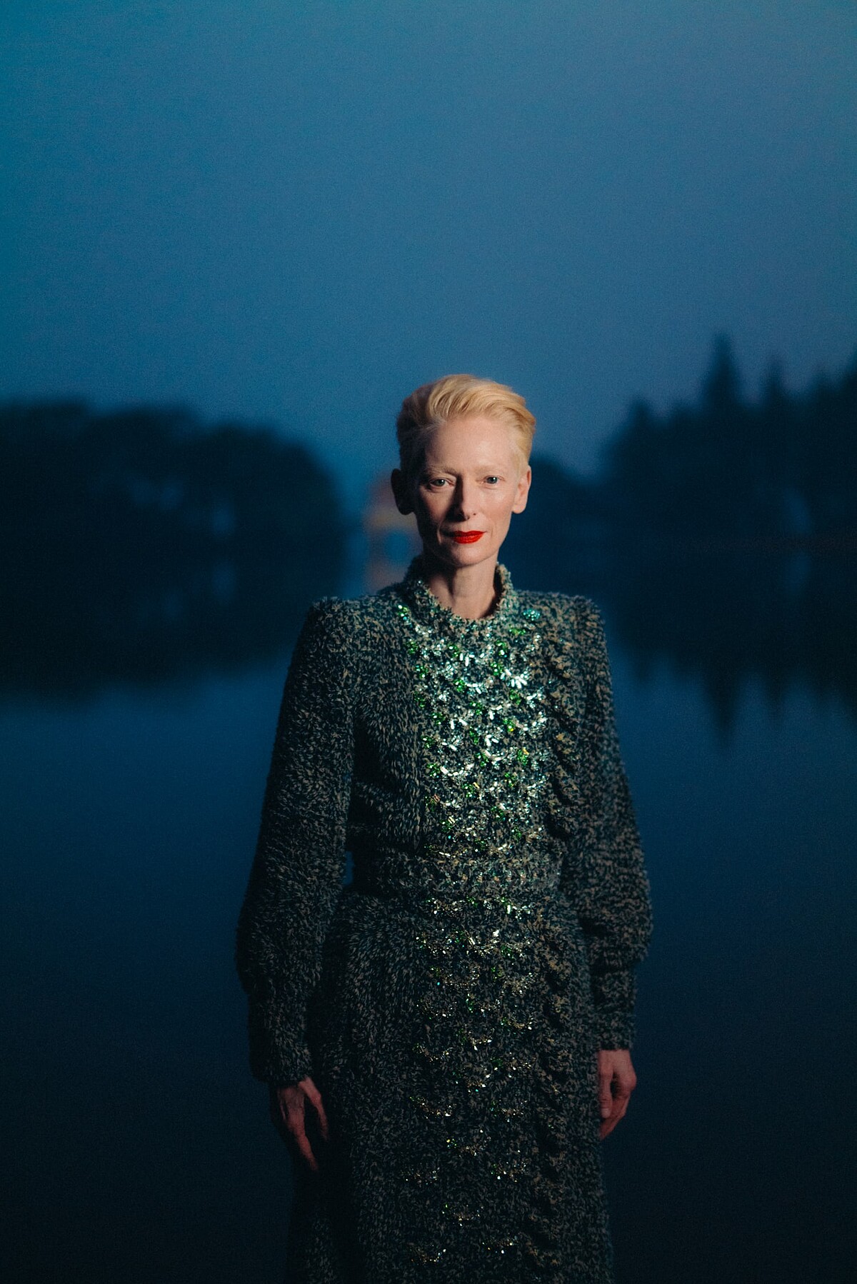 Chanel品牌大使蒂妲史雲頓身穿一套綴滿精美刺繡的Chanel 2024/25高級訂製服現身杭州西湖畔,隆重又尊貴的造型驚艷全場,美麗極了,果然是仙氣飄飄的時尚仙人。