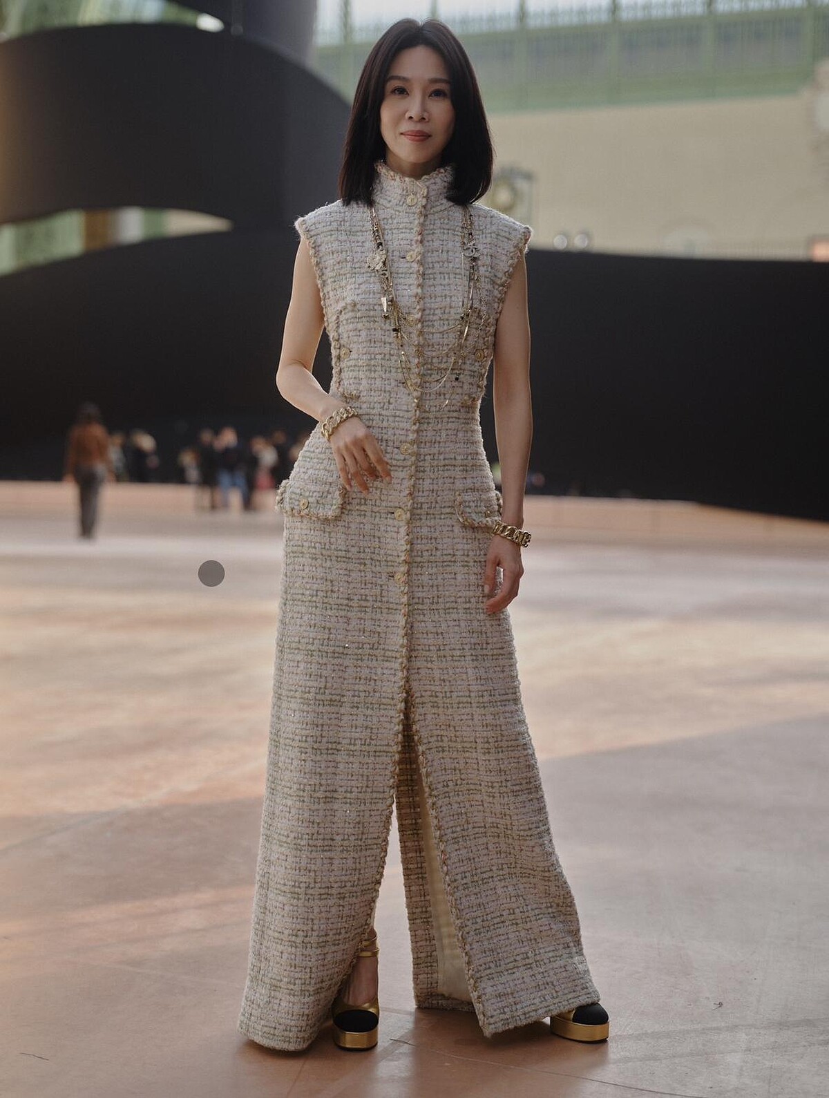 這是影后謝盈萱首次參加巴黎時裝週,獲邀參加Chanel大秀,她說道由於起點太高,因此大秀從頭到尾都處在驚呼的狀態!她身穿米色毛呢連身裙,筆直剪裁特別適合她的身形,幹練中藏著知性氣質,是她的衣服沒錯!