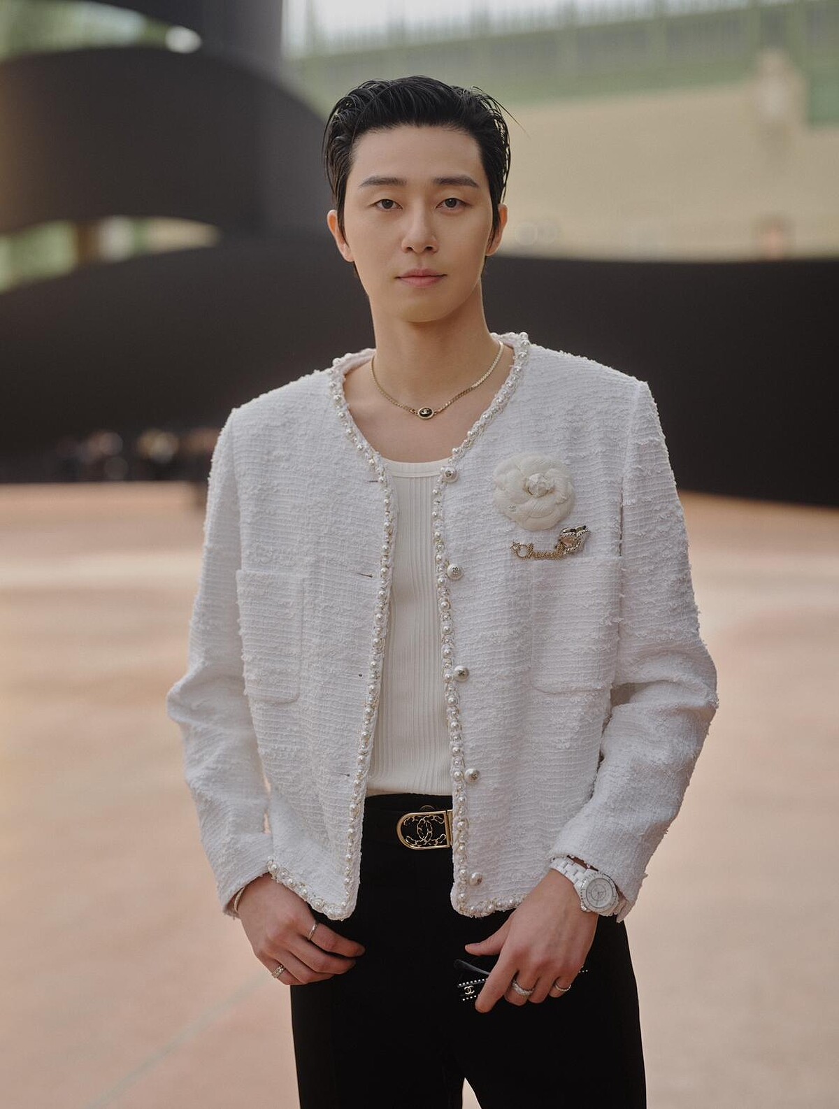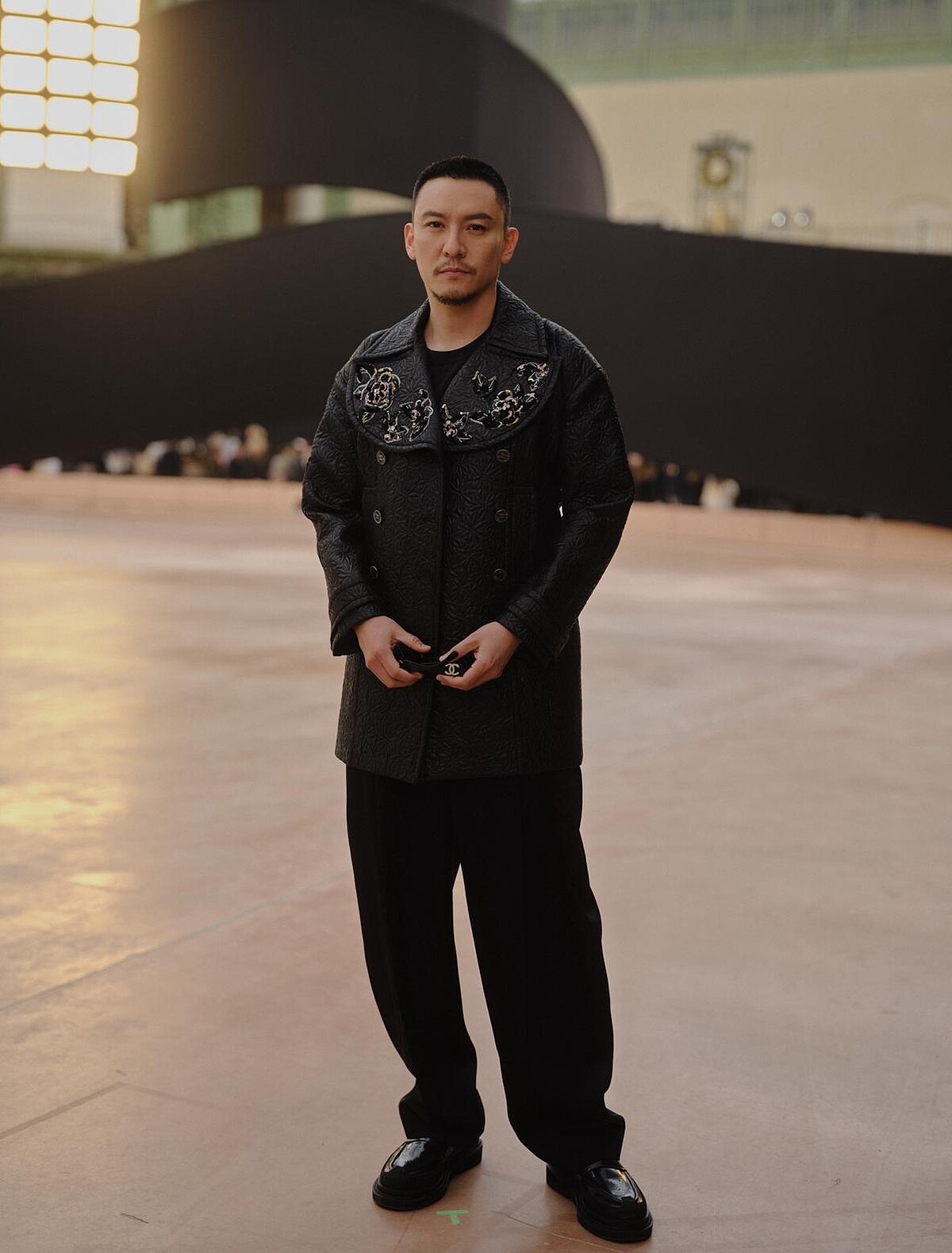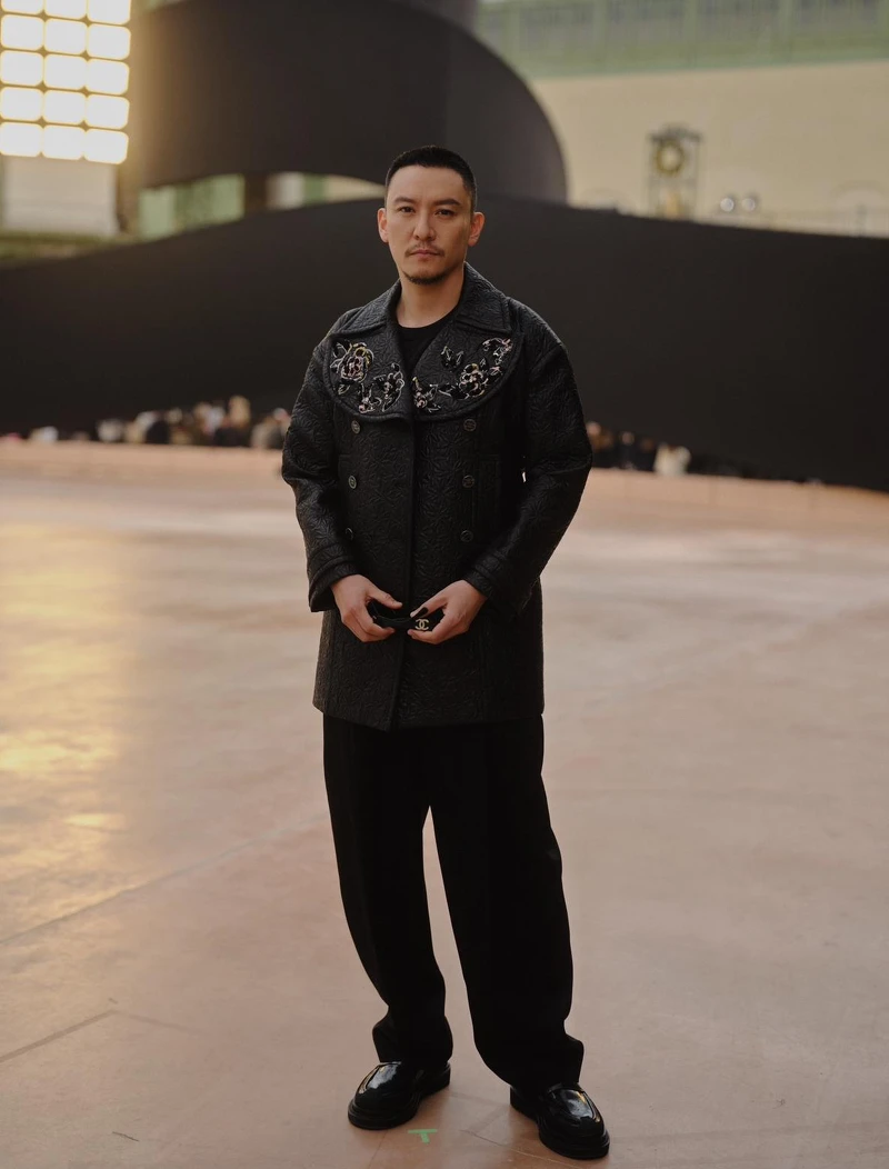 Chanel本季集結影視界重量人物,除了謝盈萱外,更邀請影帝張震出席大秀,皮革質料的翻領短大衣飾有山茶花金屬裝飾,讓本身氣場剛烈的張震,難得展示出優雅細膩的面貌。