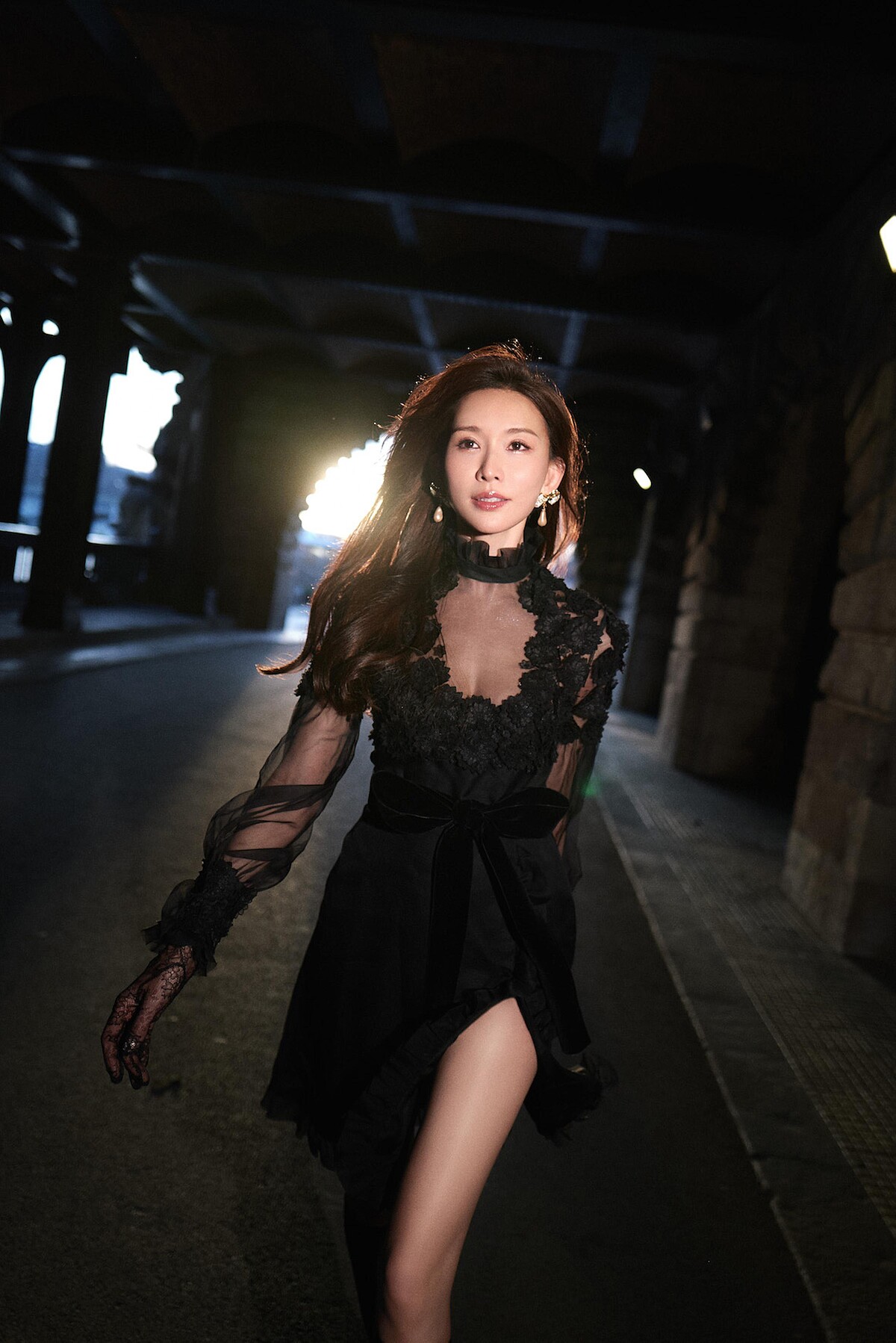 50+的志玲姐姐狀態依舊好得驚人,一身黑色薄纱蕾絲裙搭配黑色蕾絲中筒襪,胸前繁花交織典雅又有女人味,蝴蝶結耳墜隨步輕搖,優雅得彷彿時光凝結。