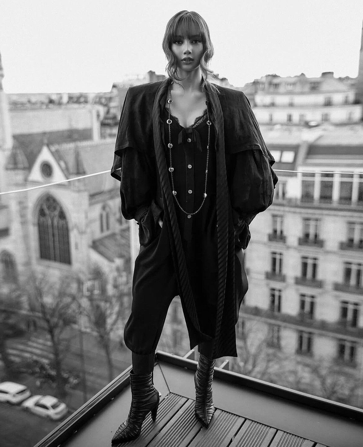 繼春夏巴黎時裝週上,Lisa再次以Louis Vuitton品牌大使的身份出席,並以一身全黑知性造型亮相,黑長版外套帶有結構感,肩部垂墜細節富有層次感,內搭黑色上衣,V領設計則帶有蕾絲邊,帶出一絲女性柔美氣息,這次是酷酷的Lisa!