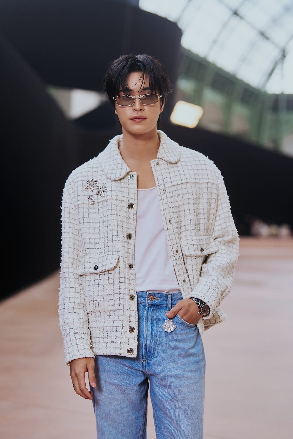泰星Norawit Titicharoenrak小名Gemini擁有高人氣,高挑身材與亮眼外型完全就是典型衣架子,難怪被Chanel相中!本季Gemini以格紋夾克搭配丹寧褲裝現身大秀,修身的柔軟輪廓藏不住他的寬肩,造型相當迷人。