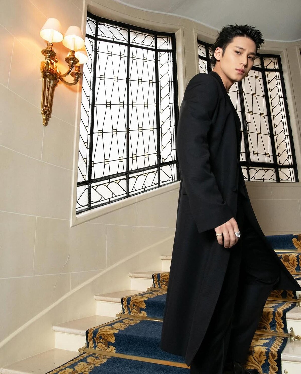 金珉奎的現身引起秀場一陣轟動,超強人氣從尖叫聲裡便能感受,本季他出席Dior大秀,以長版大衣的紳士風格亮相,留了一陣子的金髮、藍髮、紅髮……也在此時換回了黑髮色,回歸最純粹的帥氣。