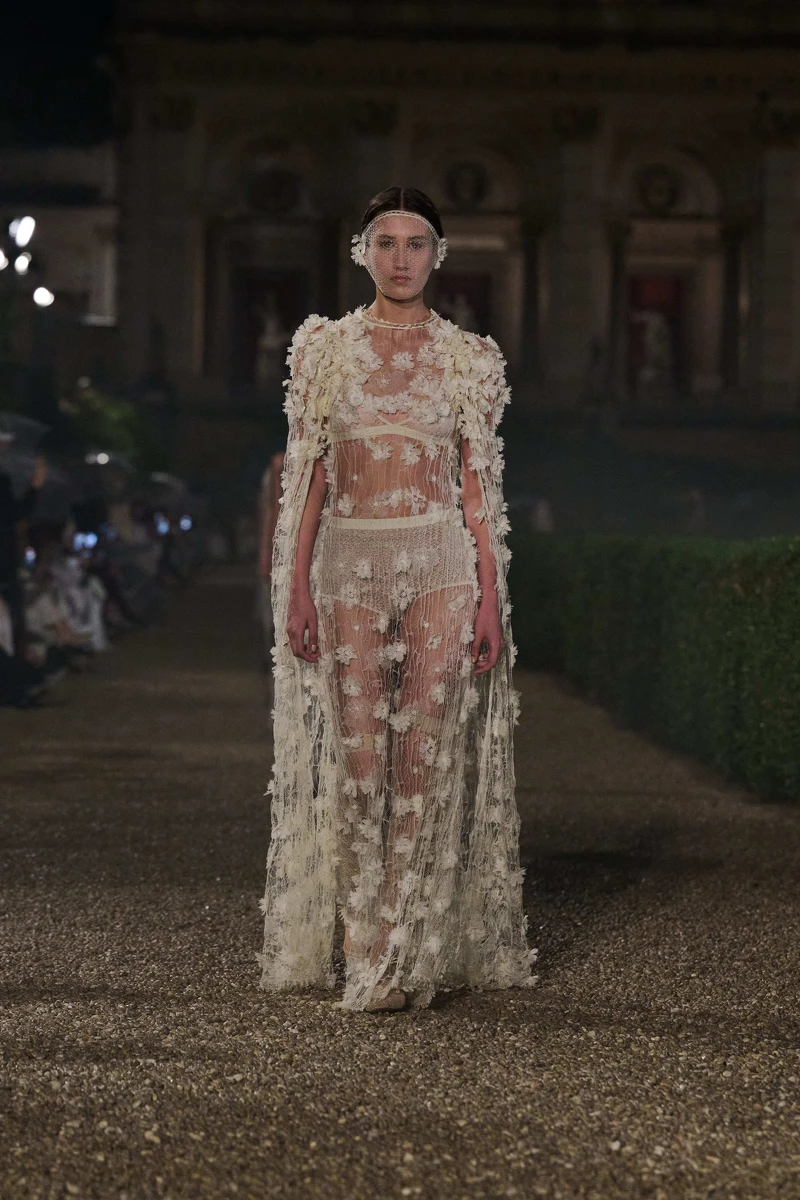 Dior 2026早春不只是度假系列,共囊括49套時裝與31套高級訂製服,這也被視為Maria Grazia Chiuri的告別禮物。透過表演藝術、戶外空間與建築融合的方式呈現,彷彿重回到18世紀的羅馬,並有著與現代交疊的影子,令人不由得放大浪漫感官,產生一種美麗的混亂。獲邀賓客們跟隨本季的白色Dresscode,如韓韶禧、娜塔莉波曼(Natalie Portman)……都以天使般清新靈動的造型來到現場。