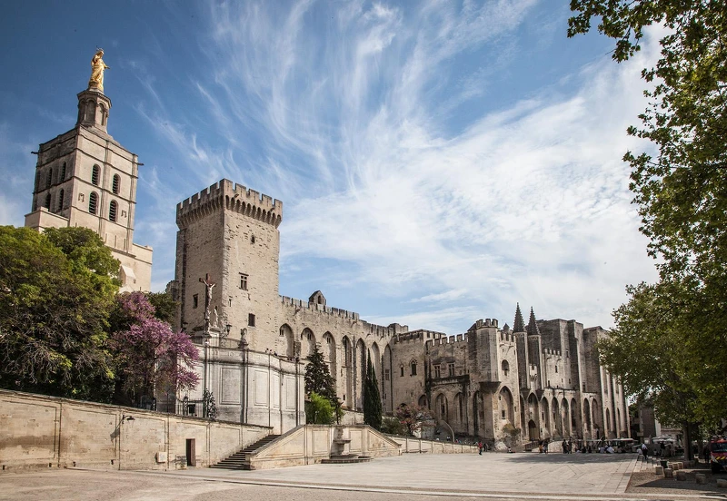 作為歐洲最大的哥特式建築之一,教皇宮始建於1335年,由教皇本篤十二世(Benedictus XII)和克萊門特六世(Clément VI)兩位教宗推動建設,最終於1377年完成。這座宮殿不僅見證了教廷權力的鼎盛時期(教宗宮早期是教宗的宮殿,也是一座要塞。十四世紀期間,亞維農教宗宮是聖座的所在地,歷史上有多次的教宗選舉是在亞維農教宗宮舉行),教皇宮以其莊嚴宏大的建築風貌,1995年正式成為法國文化遺產的重要象徵。