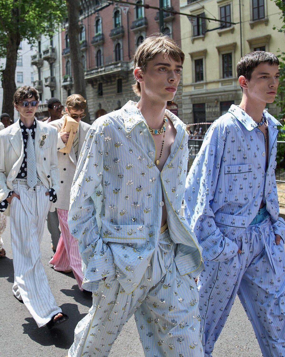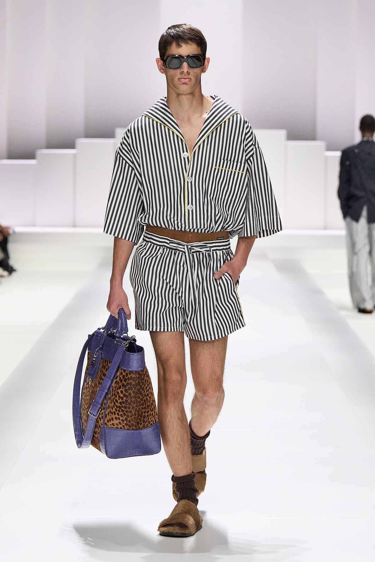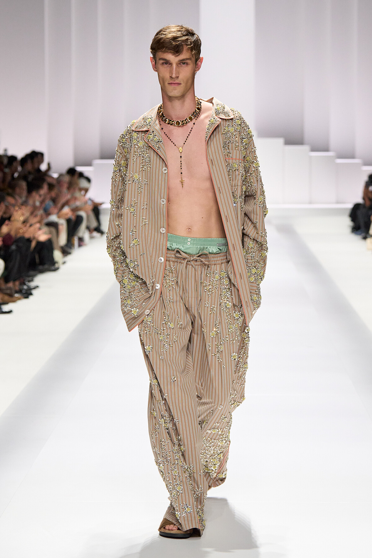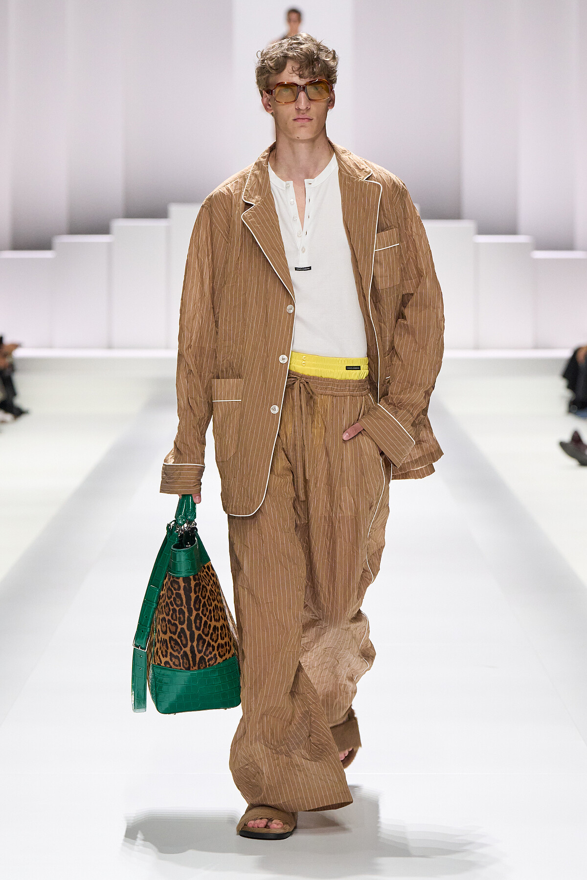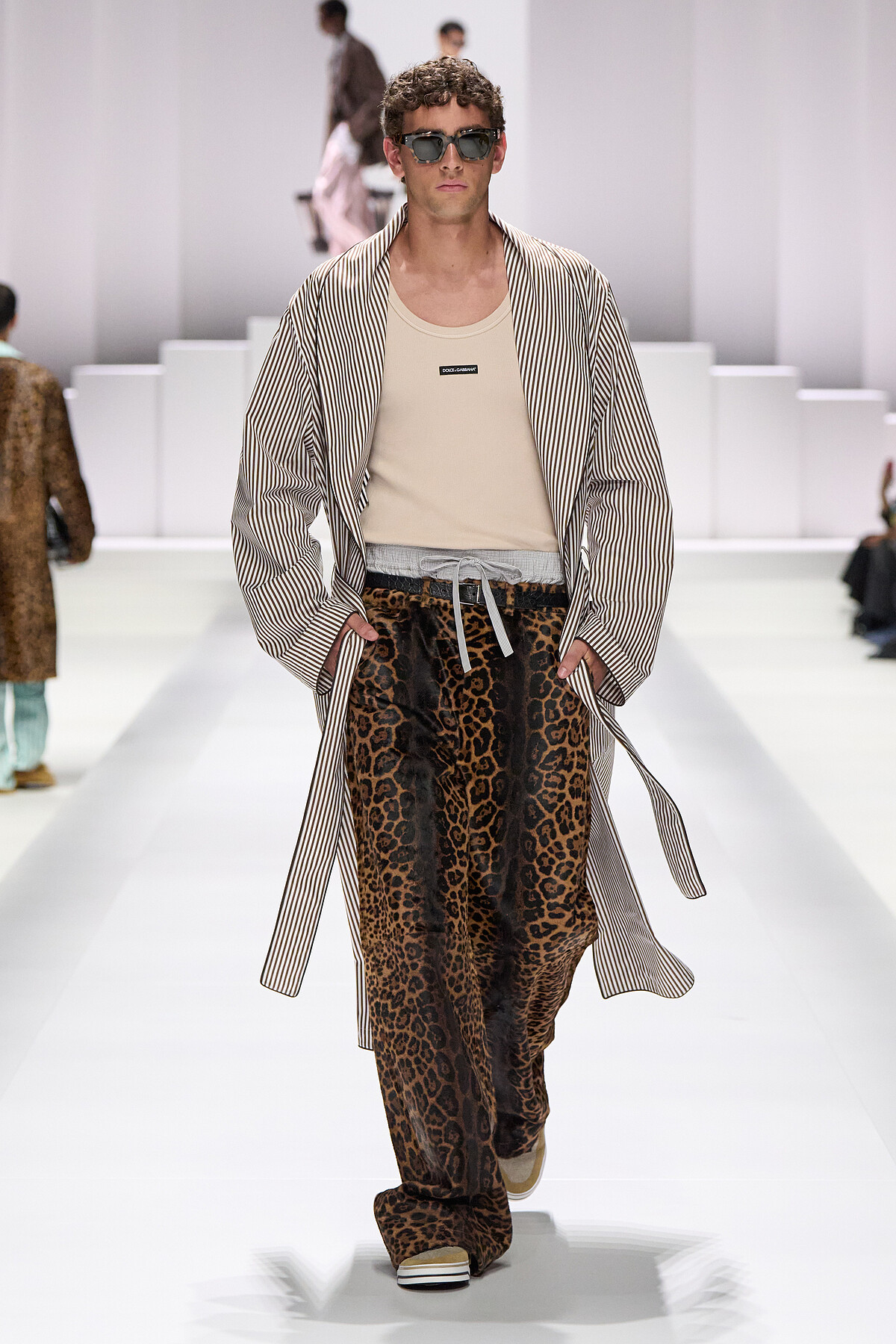 Dolce&Gabbana 2026春夏男裝系列主題定為「PAJAMAS BOY睡衣男孩」,經典的條紋睡衣成為設計主軸,輕盈棉料、皺皺質感、鬆緊抽繩⋯⋯都是回家後讓人想立刻換上的居家服特質!