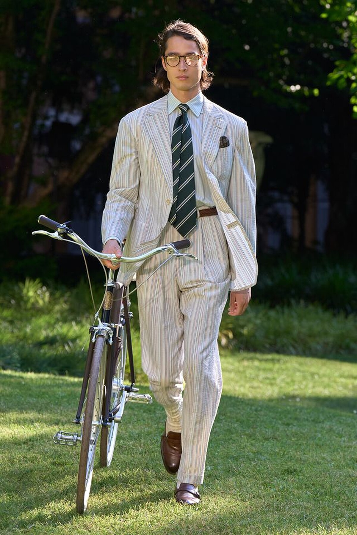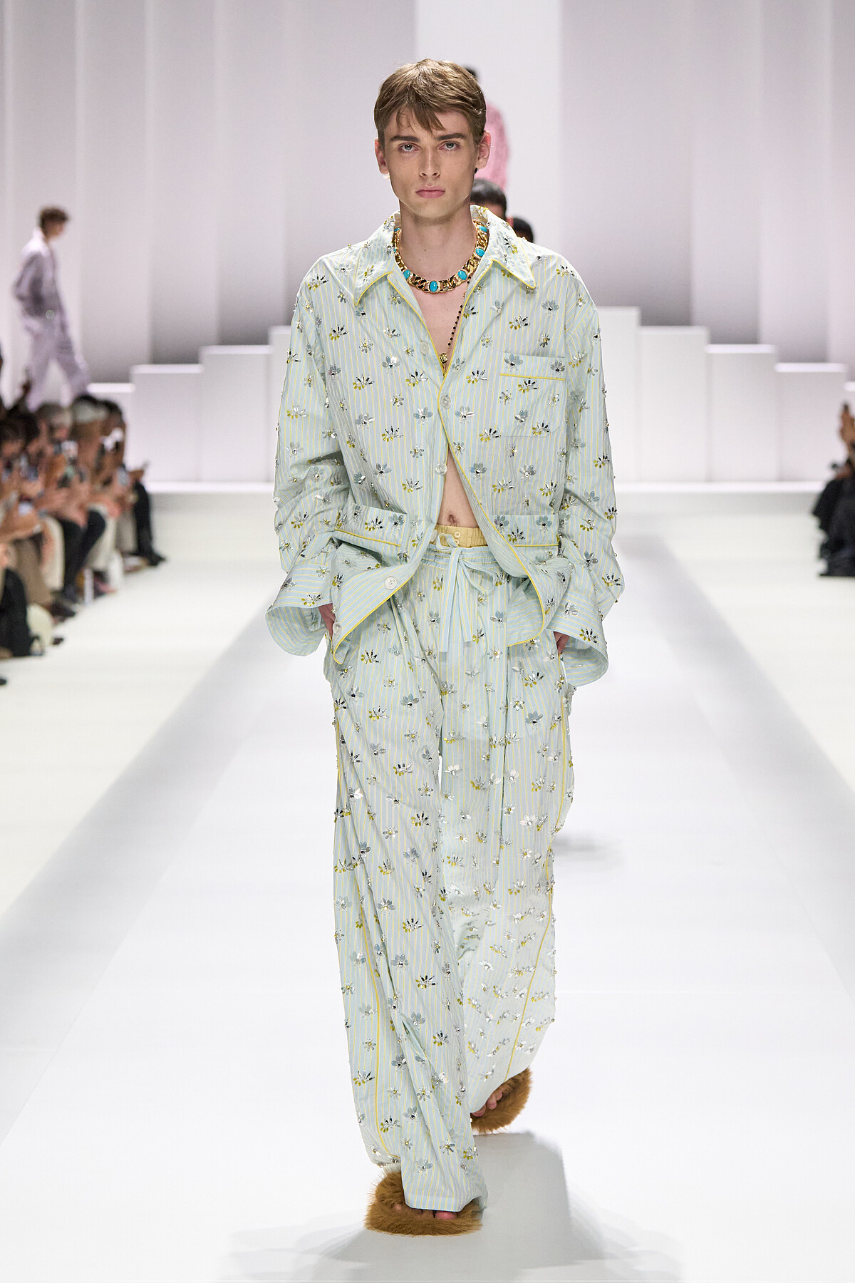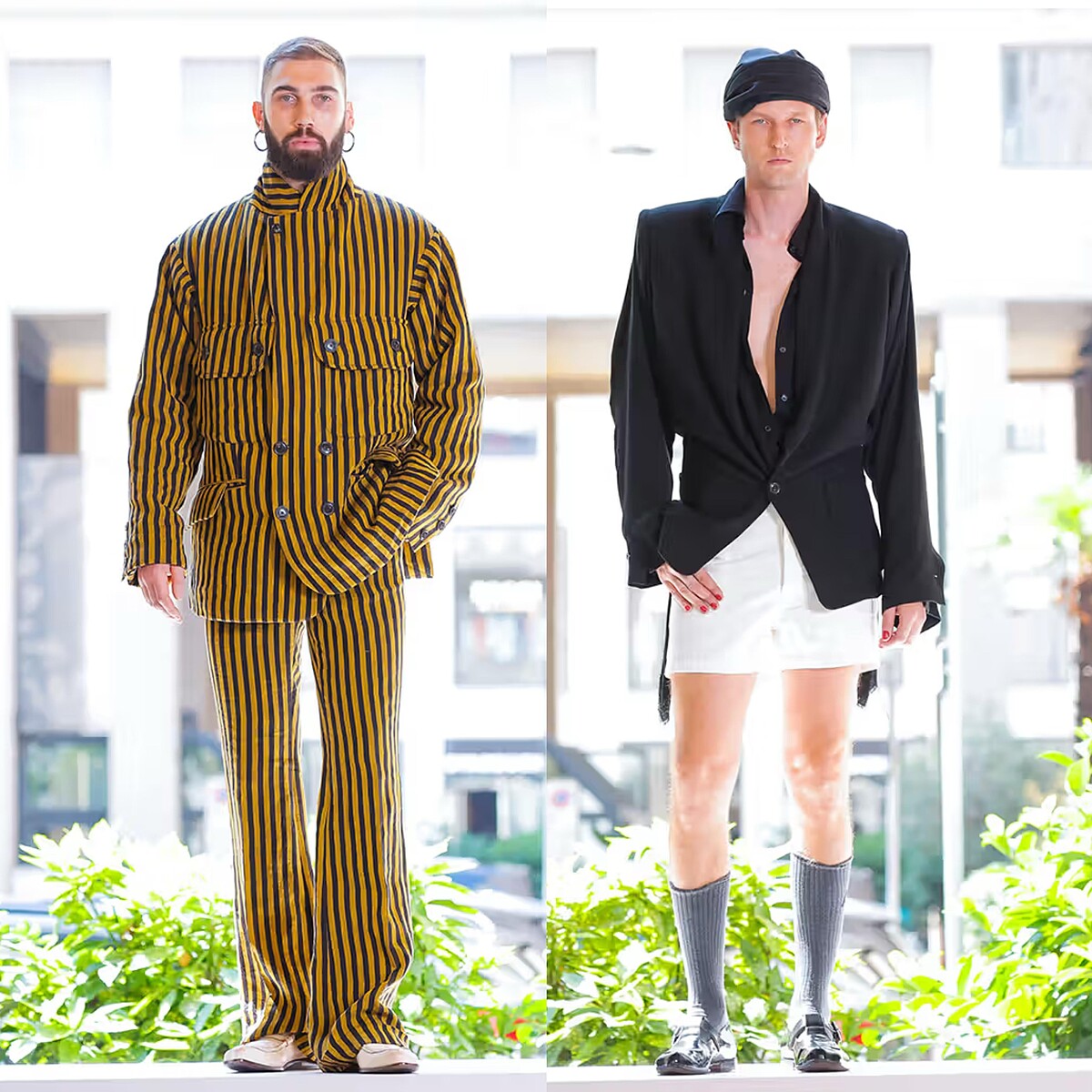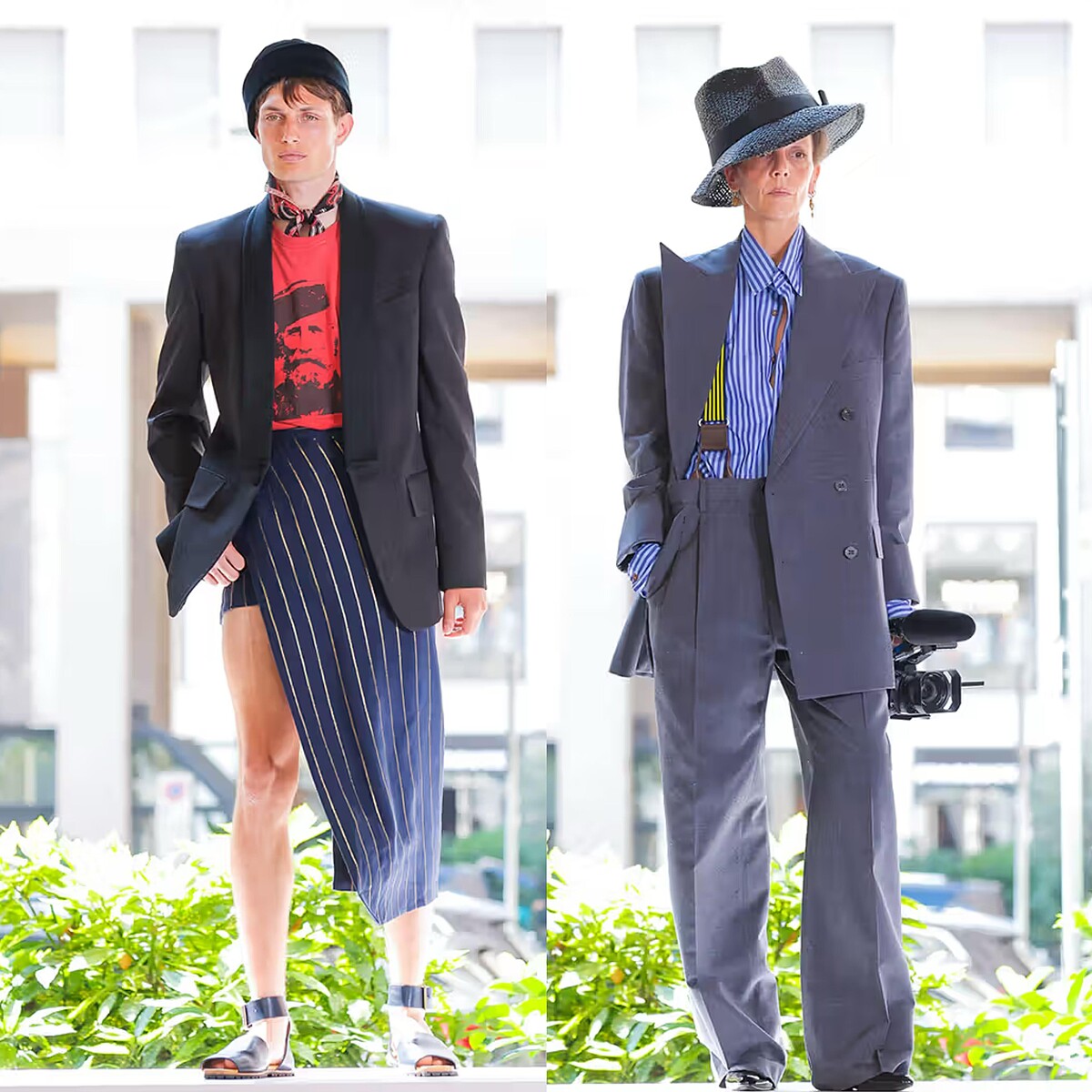 VivienneWestwood 2026春夏帶領觀眾回到文藝復興時期,當時英國貴族公子們嚮往到地中海「壯遊」,因此他們的風格受到了義式渲染。而Andreas Kronthaler強調服裝不分性別,他便把花花公子的Dandy Style夏日風格,與老奶奶衣櫥中會有元素混合在一起,例如復古印花、軟軟材質的裙子、便鞋……每一套都令人眼睛發亮!「當一位男士擁有風格,這便足夠了。風格與時尚無關,真正重要的是態度與品味的展現。」