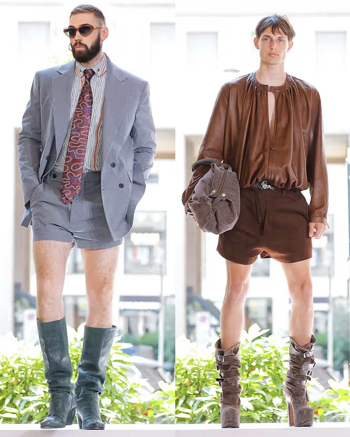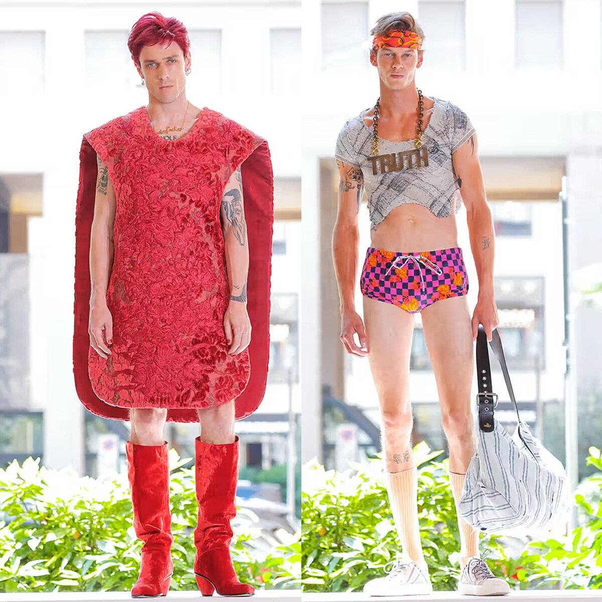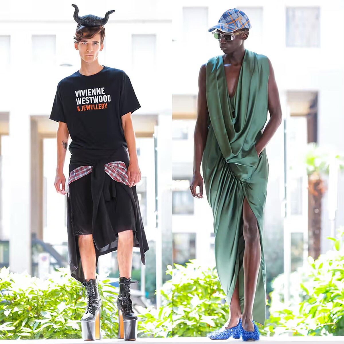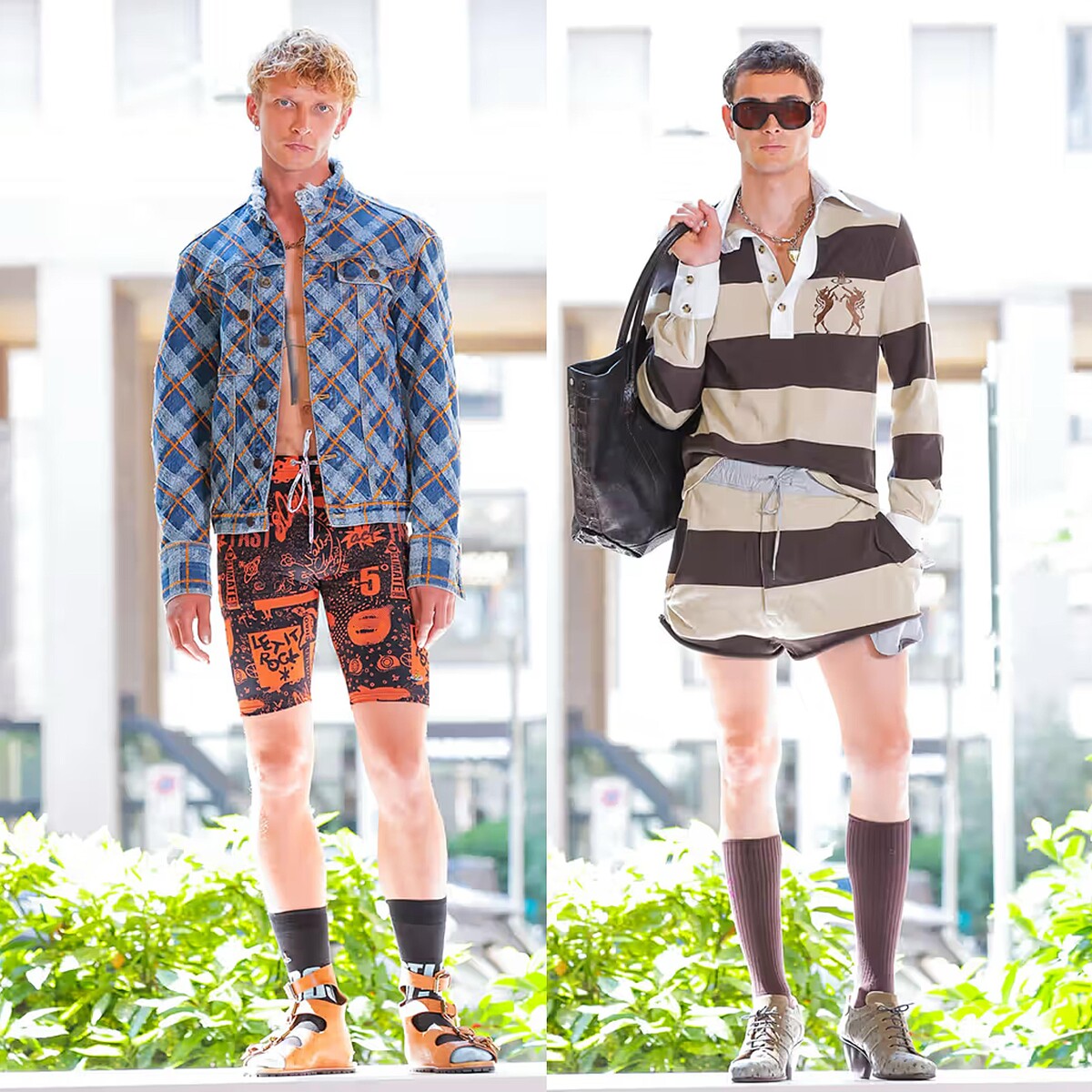 這是繼2017年Vivienne Westwood首度在米蘭發表獨立男裝系列後,睽違8年的回歸舞台。由Andreas Kronthaler主導的最新2026春夏男裝系列,我們看到男人們穿起高跟鞋(而且有些超級高!)、連衣裙⋯⋯性別邊界已被模糊。