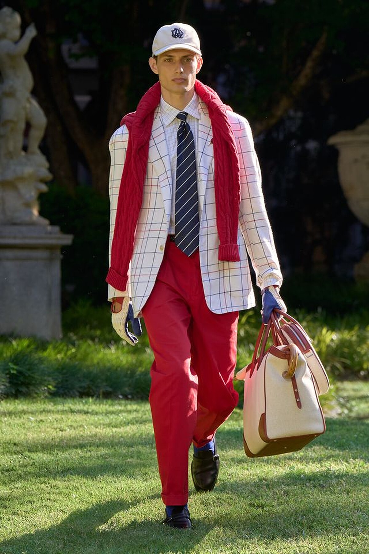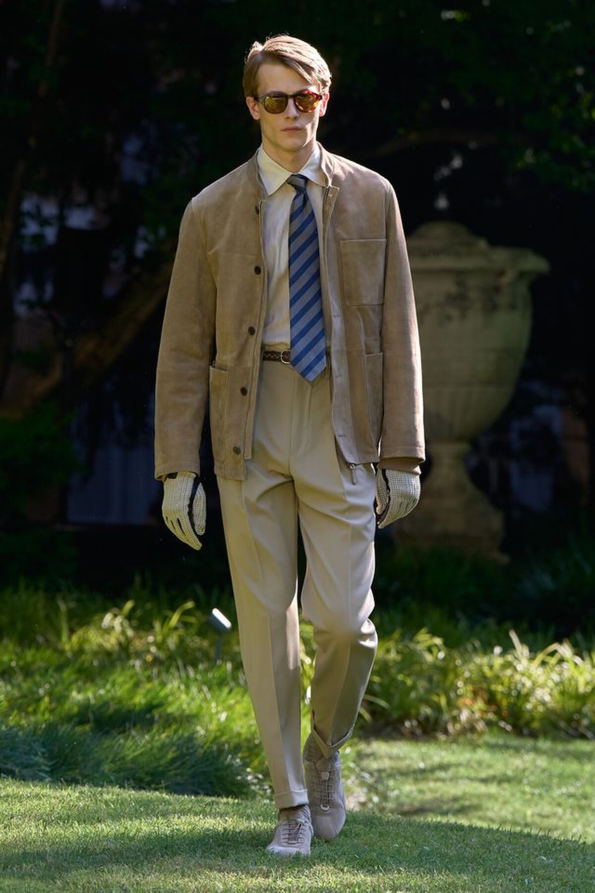 創意總監Simon Holloway為dunhill 2026春夏系列提供了破格的上流社會著裝靈感,以玩世不恭的姿態演繹正裝風格,讓優雅紳士不再呆板,頂級英倫式剪裁輪廓中,運用大膽的色彩組合、加入運動氣息、瀟灑的著衣方式,來演繹這種衝突感美學,參與走秀的漂亮狗狗們也是一個可愛亮點,同時代表著一種貴族氣息的象徵。