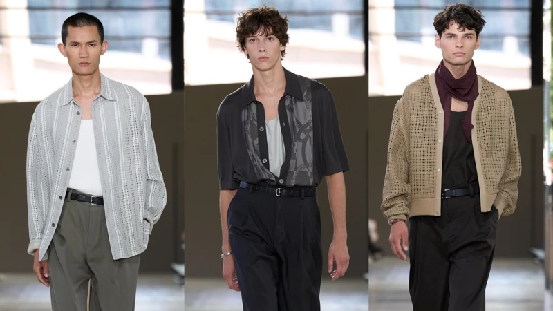 Hermès創意總監Véronique Nichanian的春夏男裝系列於巴黎耶納宮舉行,一如品牌慣有節奏,沒有喧鬧,透過服裝與工藝來說話。這一季像是一場靜靜呼吸的城市夏日,線條乾淨俐落,配色內斂卻層次豐富——從灰泥、牛皮紙棕到香草白與薄荷綠,彷彿光線在肌膚與布料之間留下過痕跡;鏤空皮革襯衫像光在身上落下的格紋,寬鬆九分褲搭配繩編涼鞋拉長線條,一切看起來輕盈又有精緻的思考,絲與棉混紡的錯落褶飾襯衫,讓人活動時,衣服有呼吸的空間,本季的Hermès再度給予大眾另一種在春夏「穿得好」的生活方式提案。