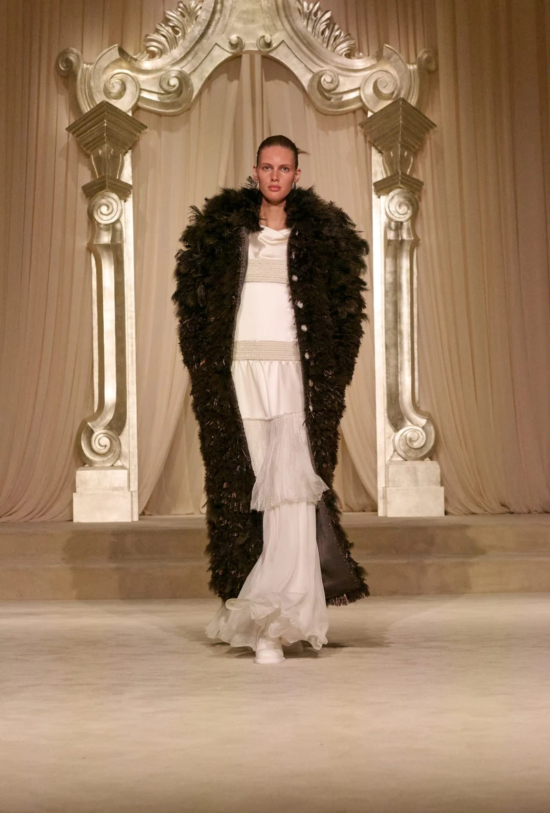 當最後一位模特兒緩步而出,頭戴由麥穗羽飾構成的王冠,整場秀彷彿轉為儀式——一場向香奈兒女士致敬的時尚牧歌,於沉靜之中結束。