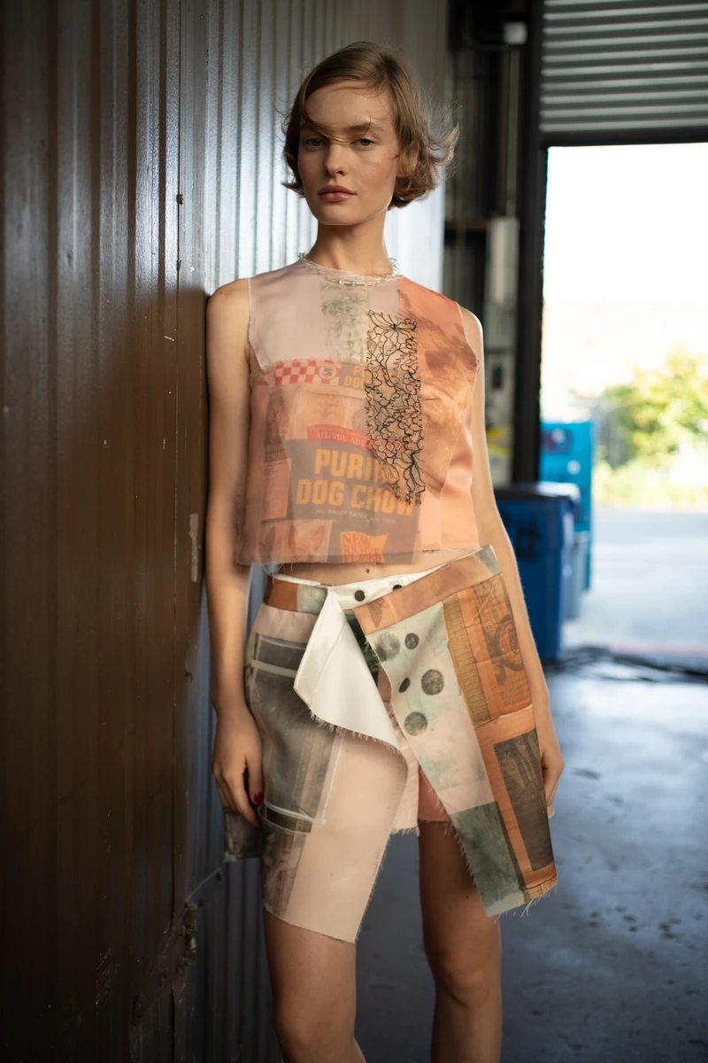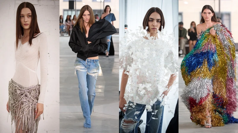 在紐約的人,每個人都想要與眾不同,於是Ib Kamara又了大膽且極繁的設計來回應如是的心理,包含丹寧布與施華洛世奇水晶的搭配、亮眼的塗鴉色塊組合、大膽的鏤空剪裁⋯⋯歌頌流行文化(Pop Culture)所帶給人的自信!