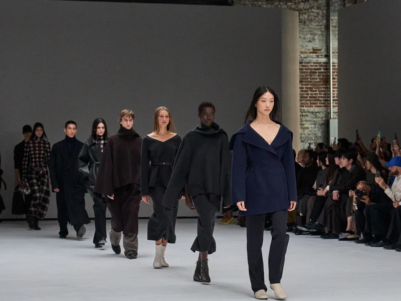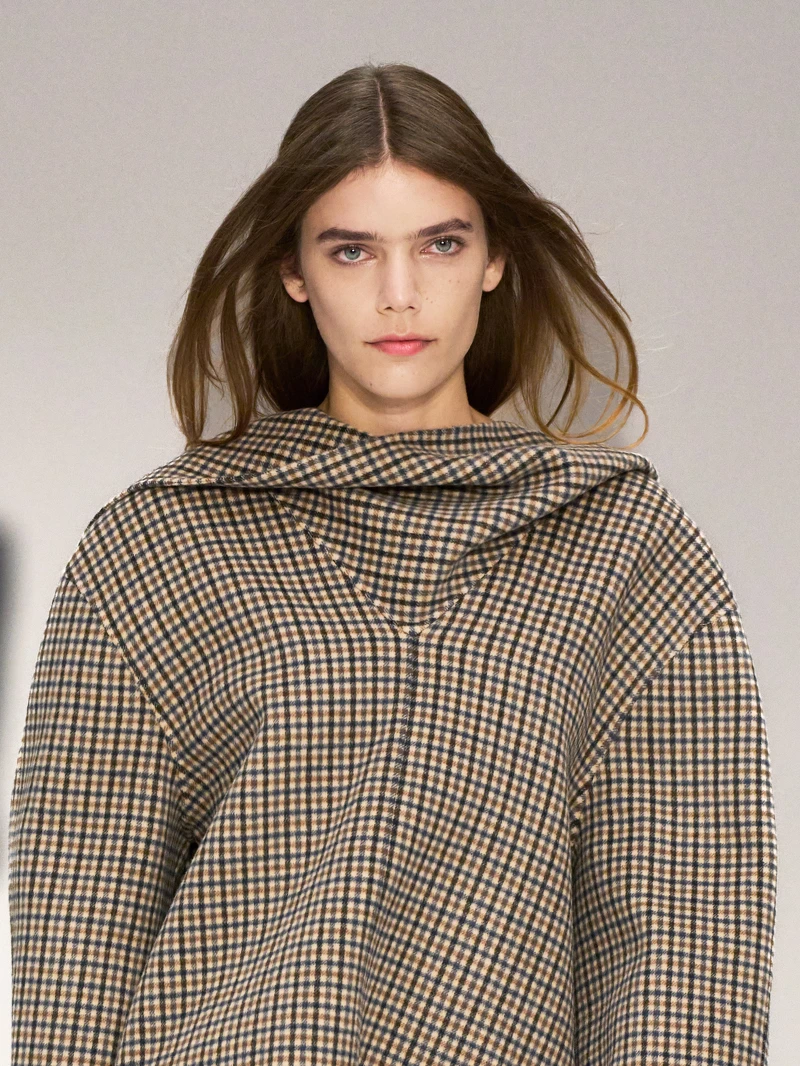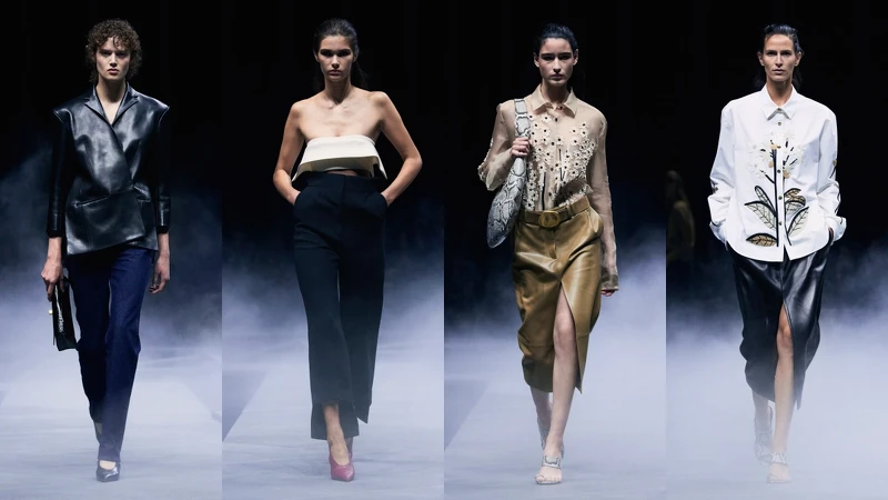 要如何拿捏二元性之間的平衡?看Tibi 2026春夏系列《堅毅與優雅》(Grit and Elegance)便能略懂一二,服裝版型大抵受到粗獷主義與建築包浩斯主義影響,乍眼看去線條俐落、帶有幾何形狀菱線,不過再細看第二眼便可以領會Tibi想探討的「對立之間的平衡感」,在菱線之間穿插柔和的流線;色彩上,以灰調的棕、綠色為基調點綴上黑白,脫俗氣質的中性色調卻不失都會的幹練個性,與各種牛仔布料與硬挺材質結合,拿捏出完美的平行感。