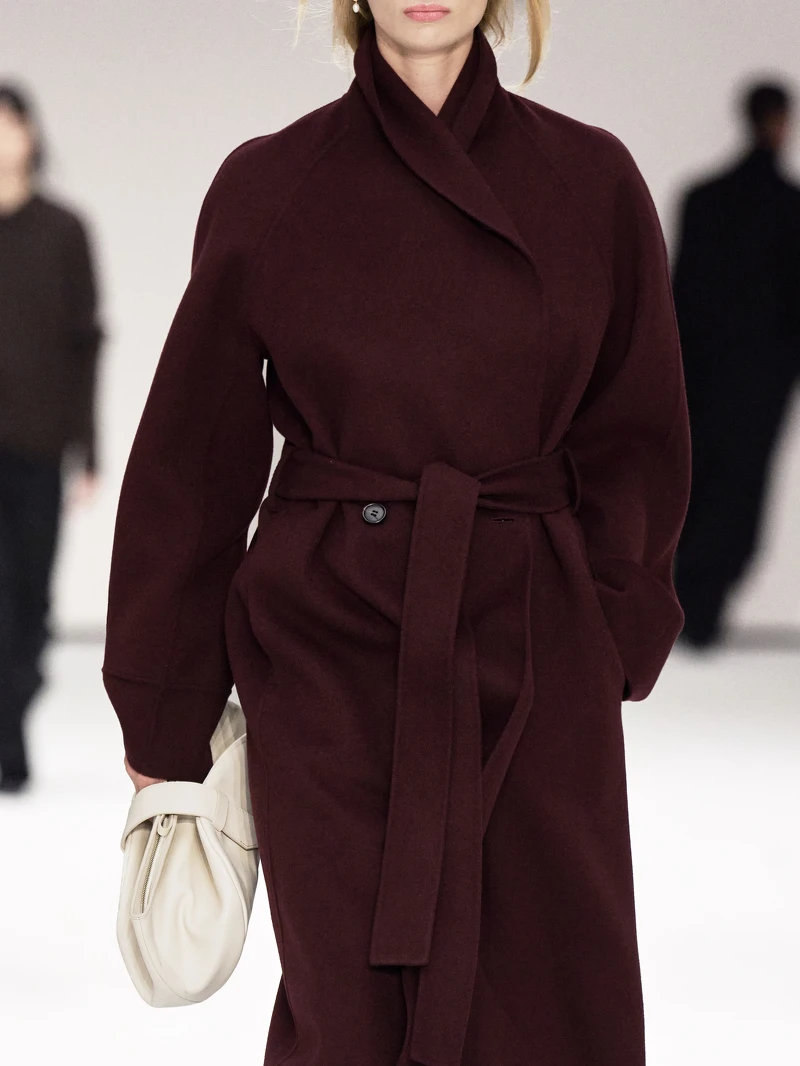 服裝色調定調於沈穩的墨黑、深灰、海軍藍以及棕木色,COS將細節放在材質的選用上,包含仿小馬毛、羊羔毛以及皮革,讓面料在行走中所形塑出的光澤自成一個重點;女裝剪裁方面,在基本款上做了一些巧思,像是不一樣的高領造型,又或是展現曲線變化的束腰細節等,都是向1950年代的New Look主義致敬,古典美學再譯成COS的永恆美學。