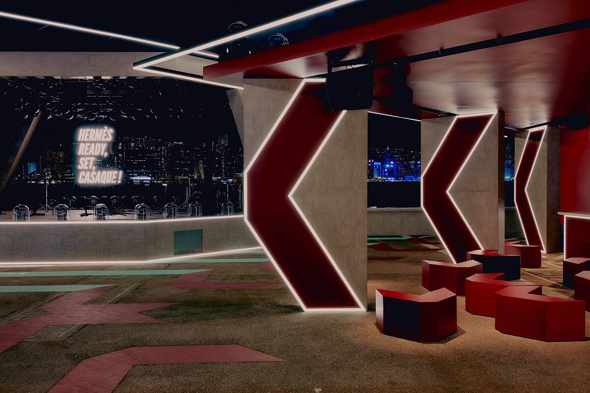 人們穿梭於結構縱橫的空間中,宛若時間加速奔馳的瞬間,傳遞永恆細膩的馬術精神,將傳統符號轉譯為當代都市的文化與風格符碼。