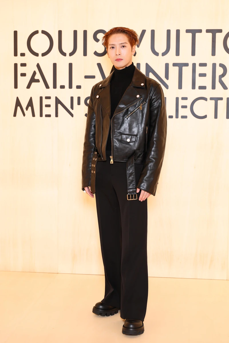王嘉爾以高領上衣搭配機車皮夾克來抵禦巴黎低氣溫,全黑色系不用多說,就是一個字「帥」!